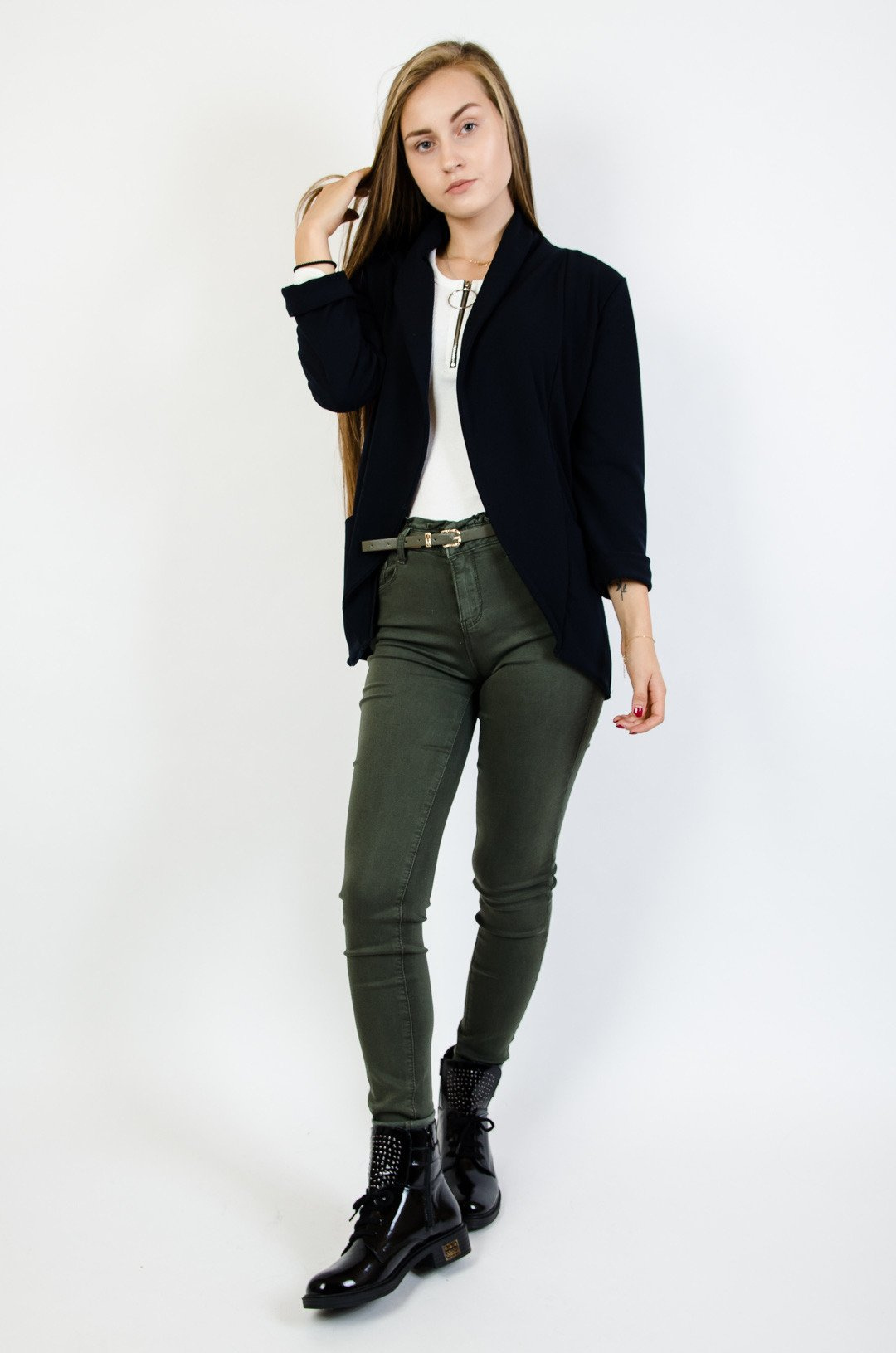 Granatowa narzuta-marynarka z zakładką, podwinięte rękawy