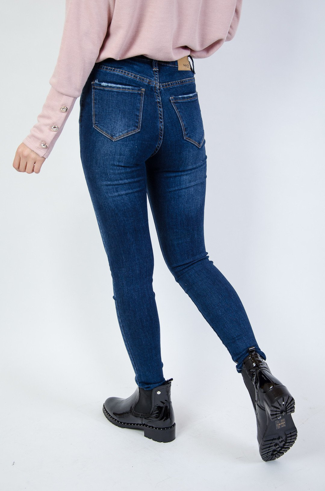 Jeansowe przylegające spodnie z przetarciami