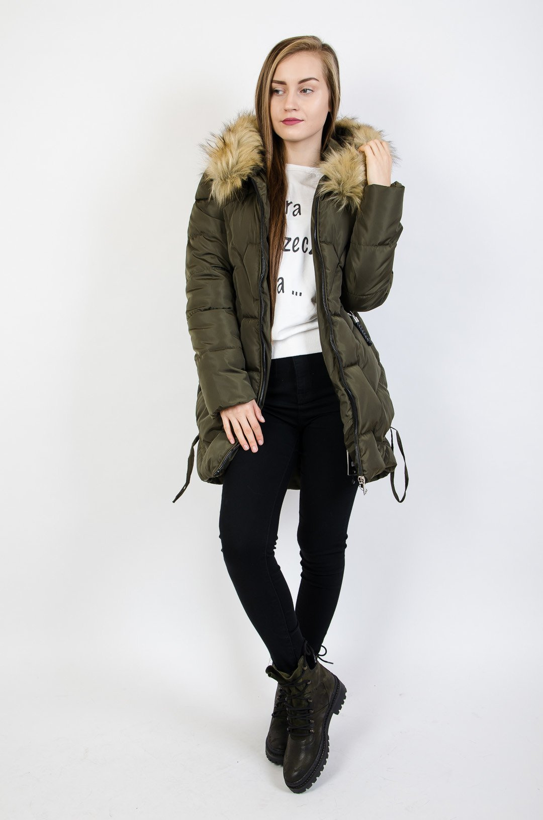 Zielona pikowana kurtka ze srebrnymi zamkami