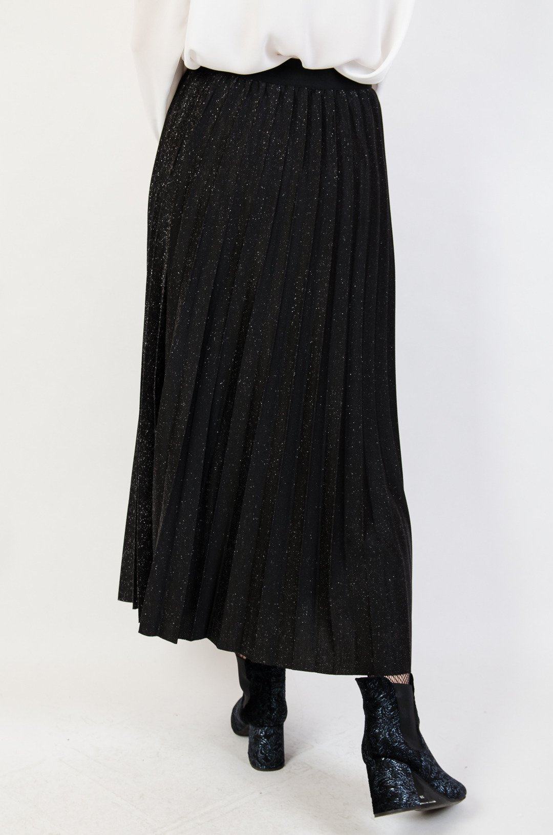 Czarno-brokatowa plisowana spódnica z gumą w pasie