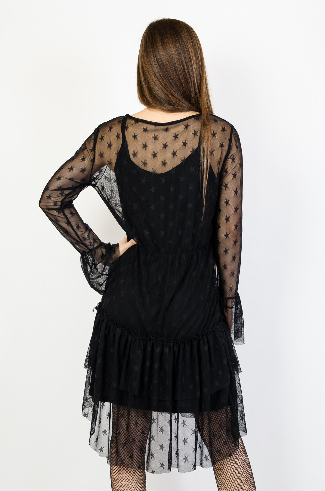 Czarna siateczkowa sukienka w gwiazdki