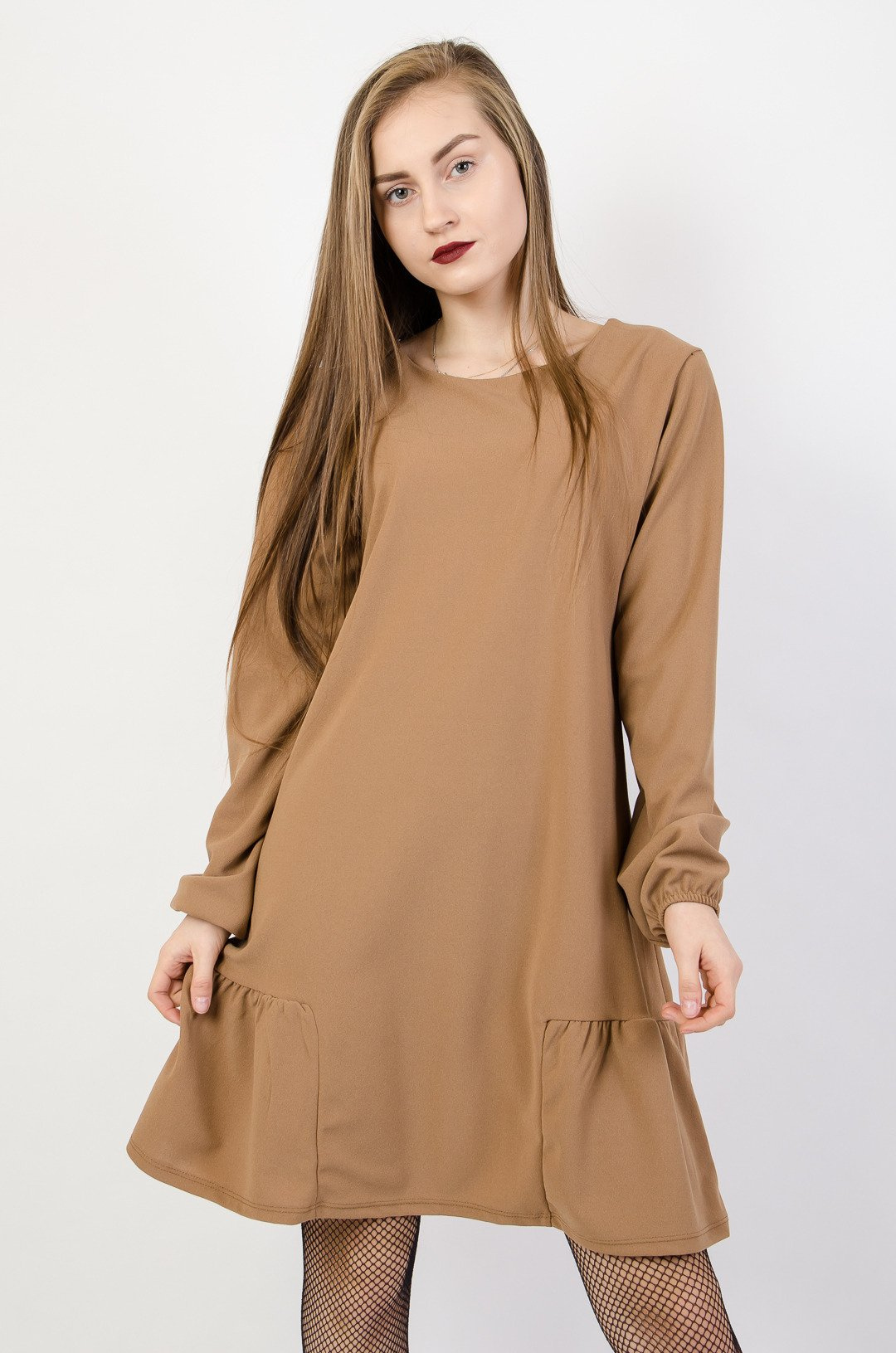 Jasnobrązowa sukienka z ozdobnym marszczeniem