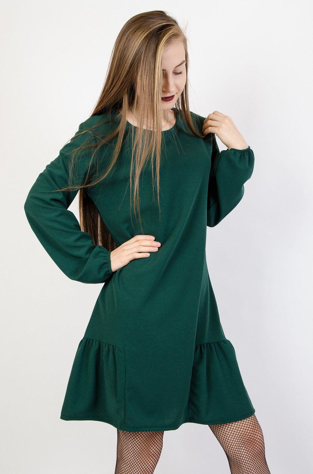 Zielona sukienka z ozdobnym marszczeniem