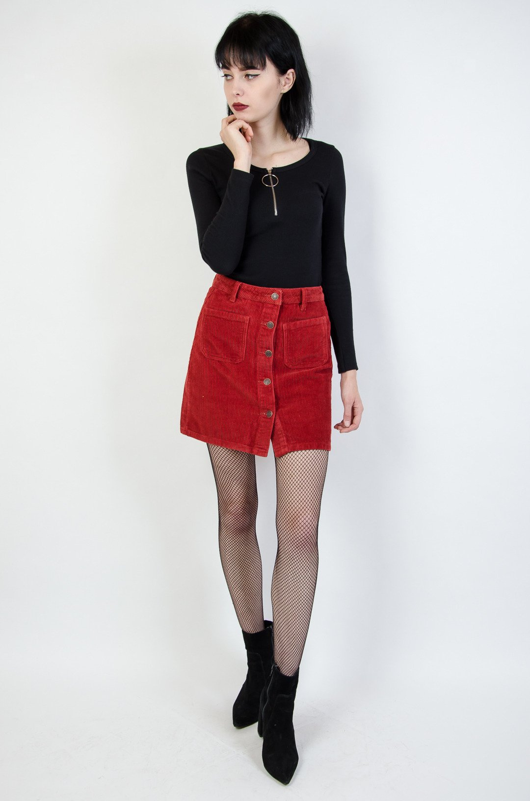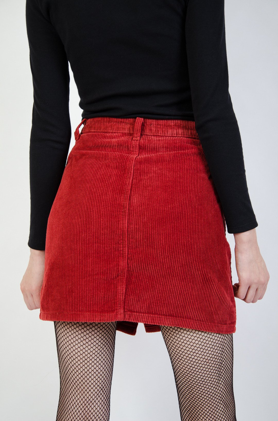 Sztruksowa spódnica z guzikami w kolorze bordowym.