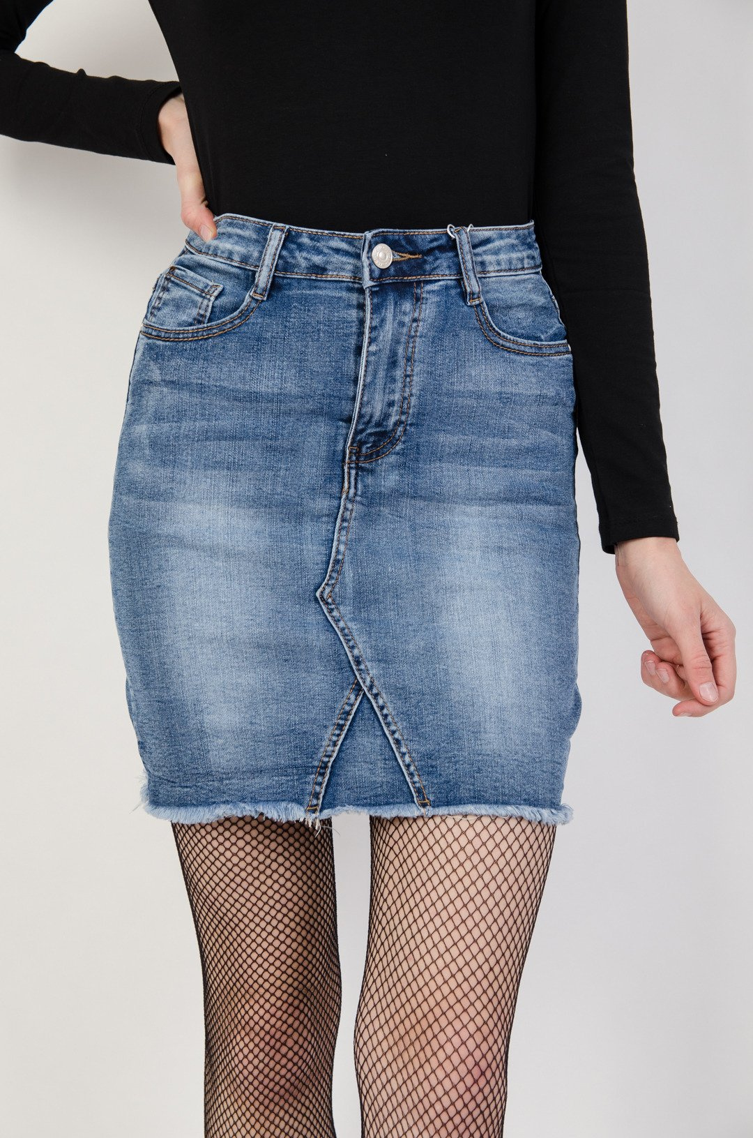 Jasna spódnica jeansowe z szarpaniem na dole