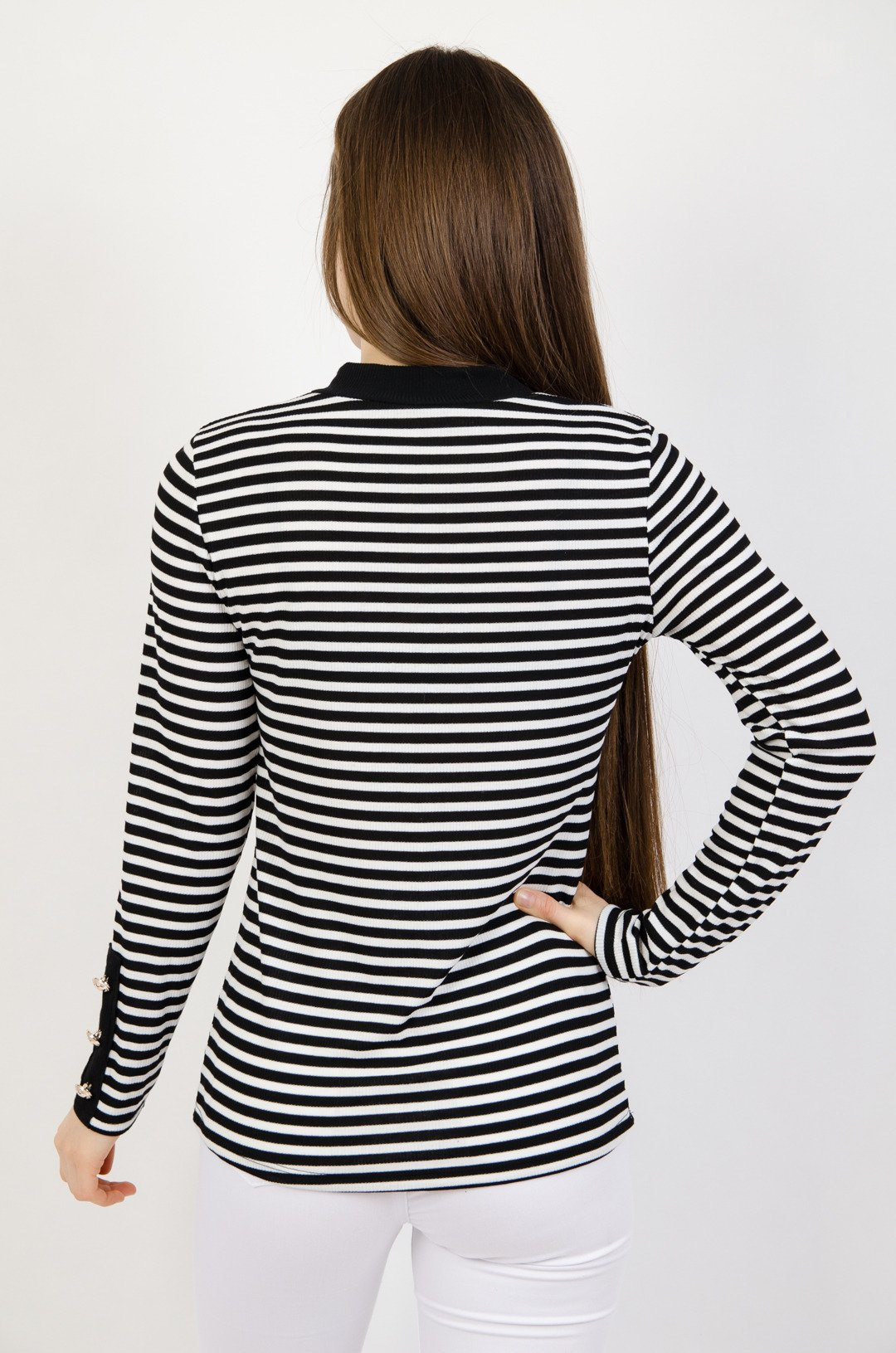 Prążkowana bluzka w biało czarne paski ze złotymi guzikami