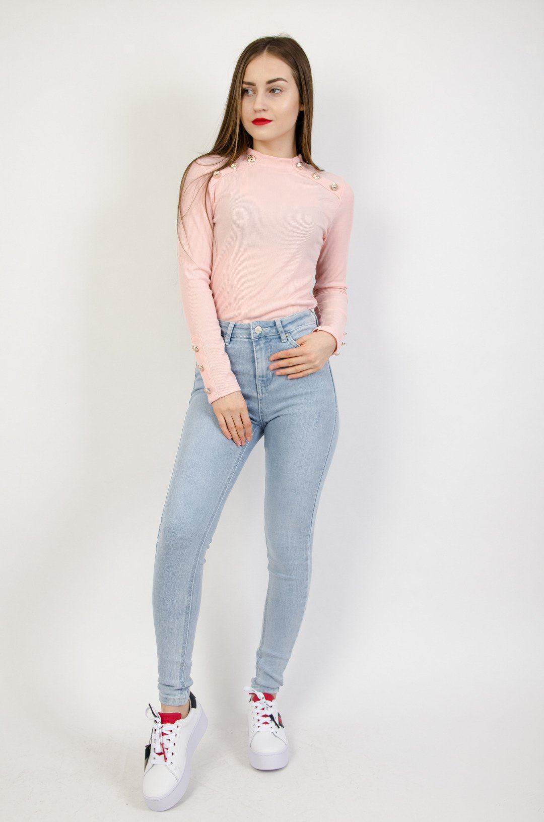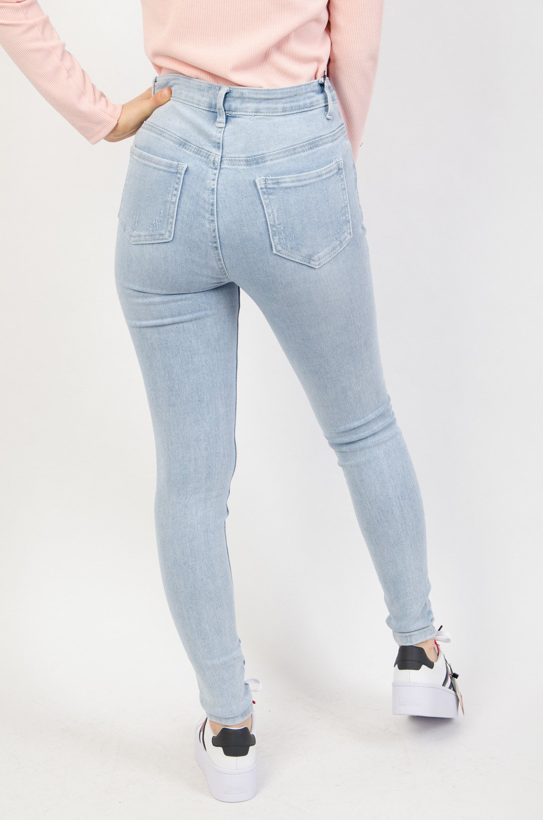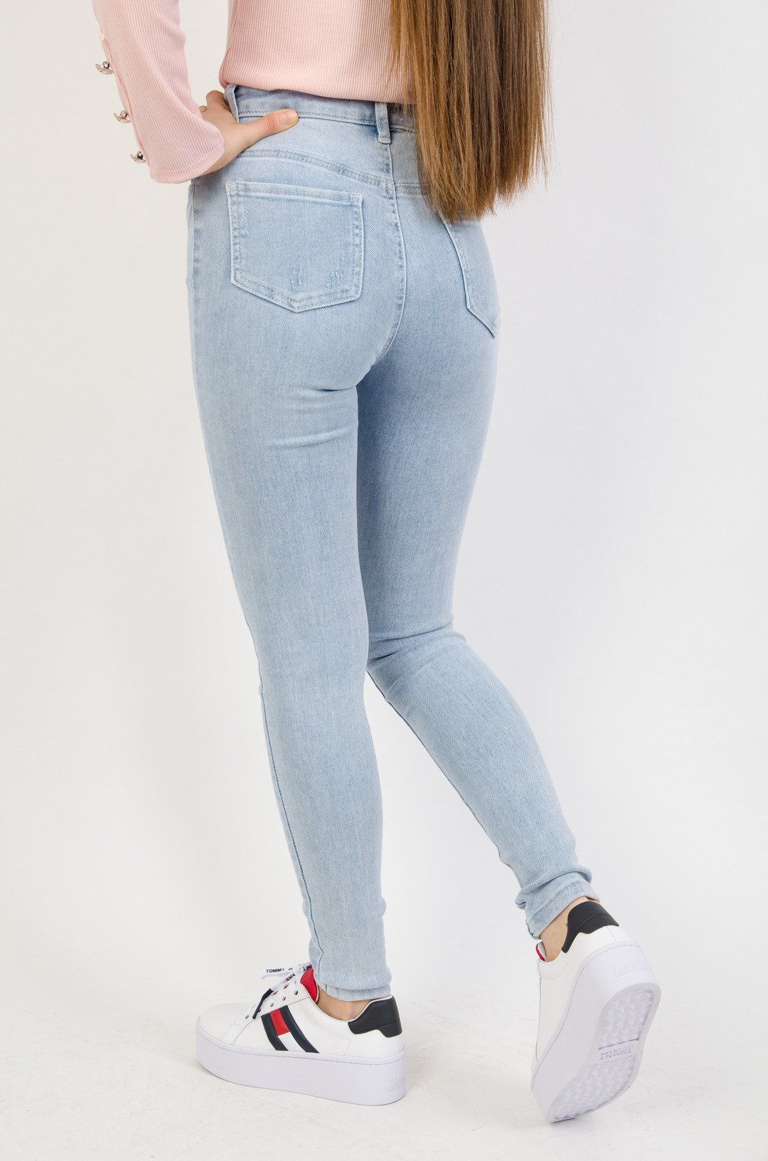 Jasne spodnie jeansowe z wyższym stanem