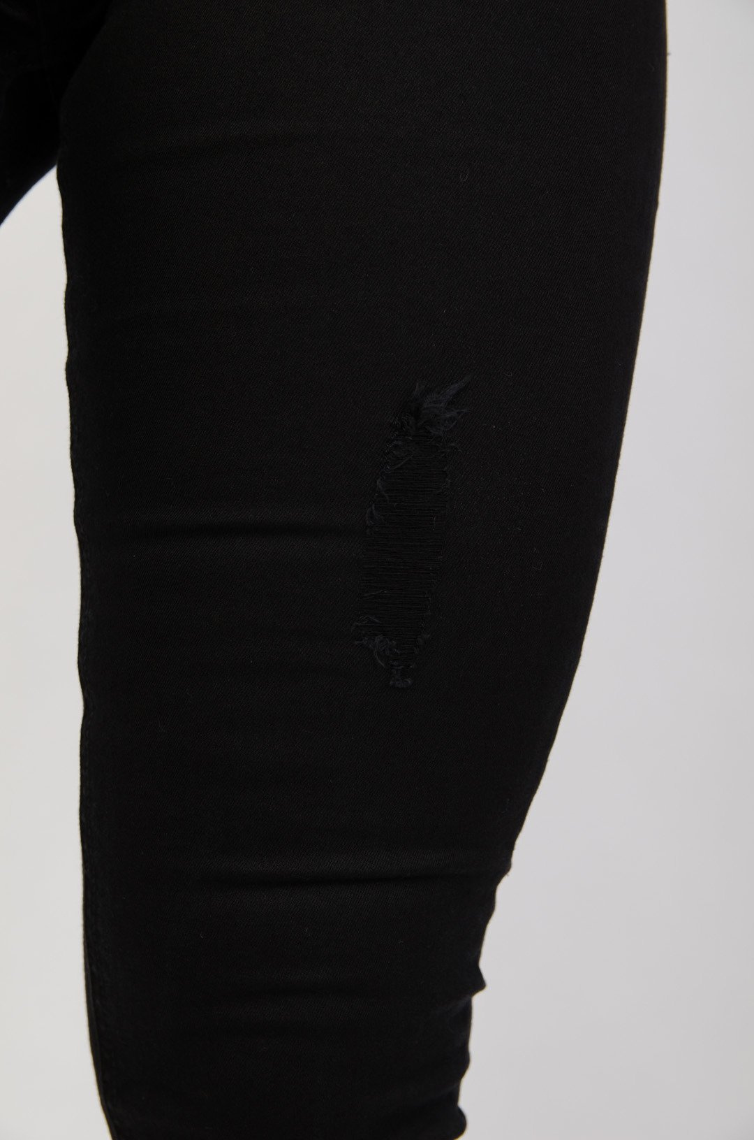 Czarne spodnie jeansowe z przetarciami zapinane na guziki.