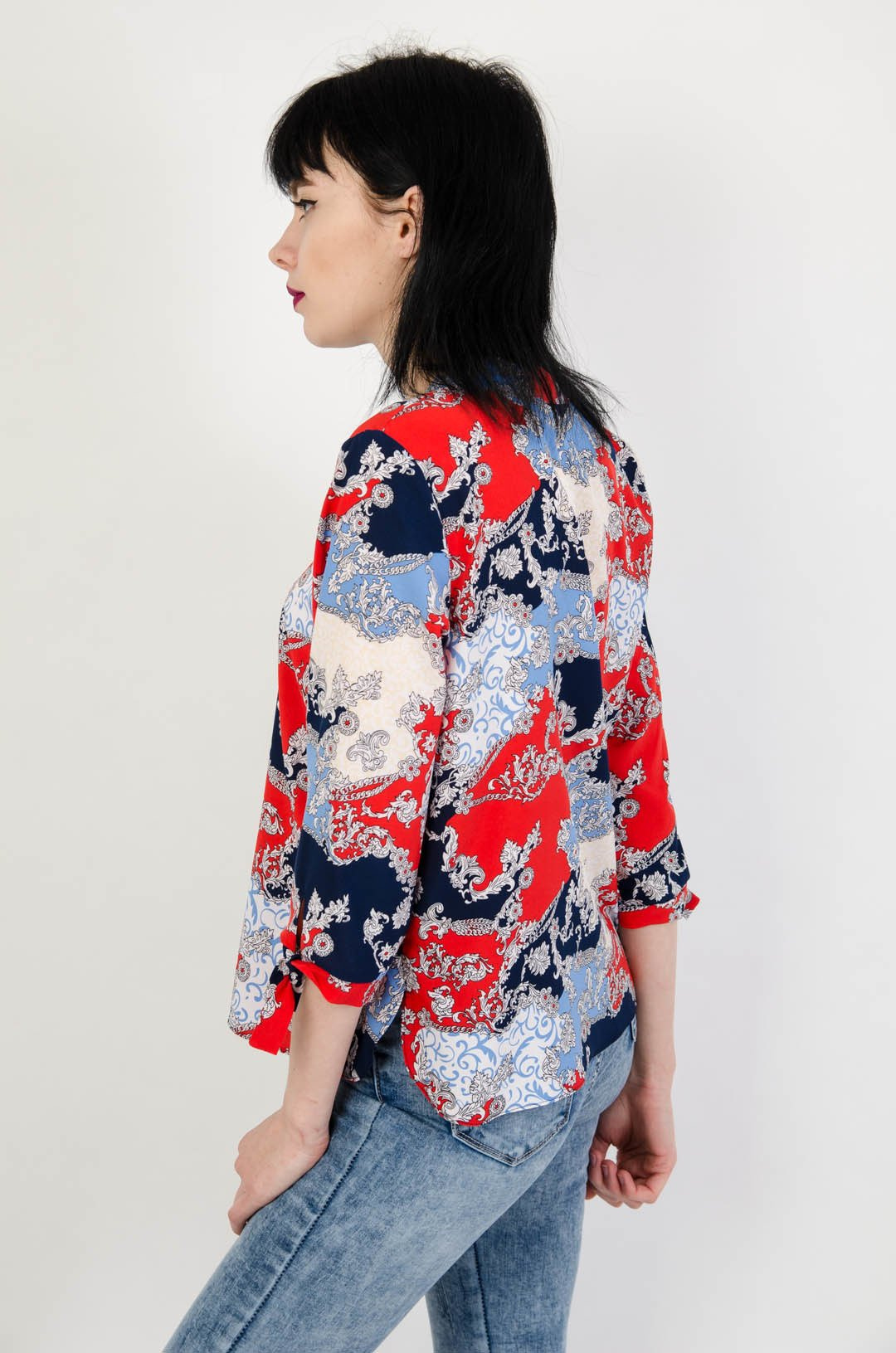 Wzorzysta bluzka z wiązaniem przy dekolcie