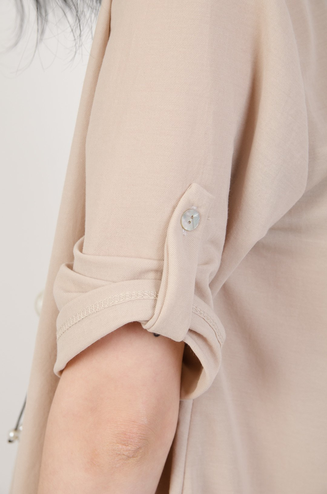 Beżowa asymetryczna bluzka z falbaną + wisiorek
