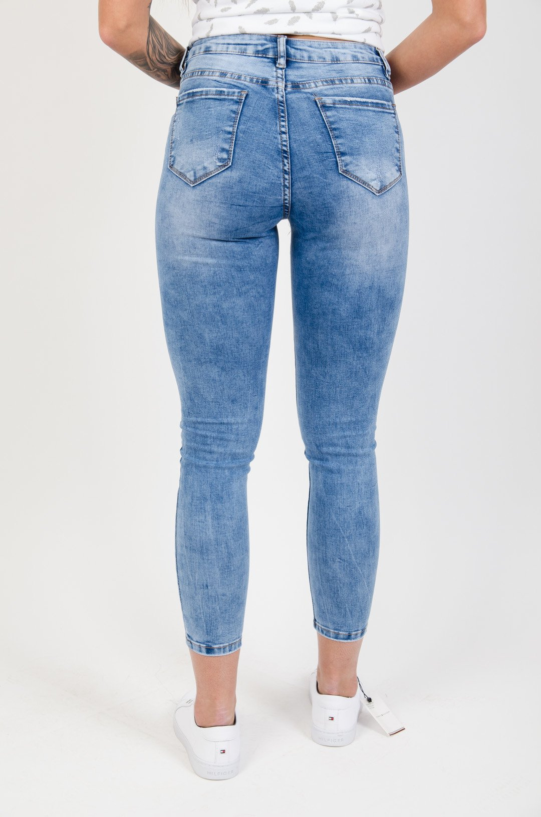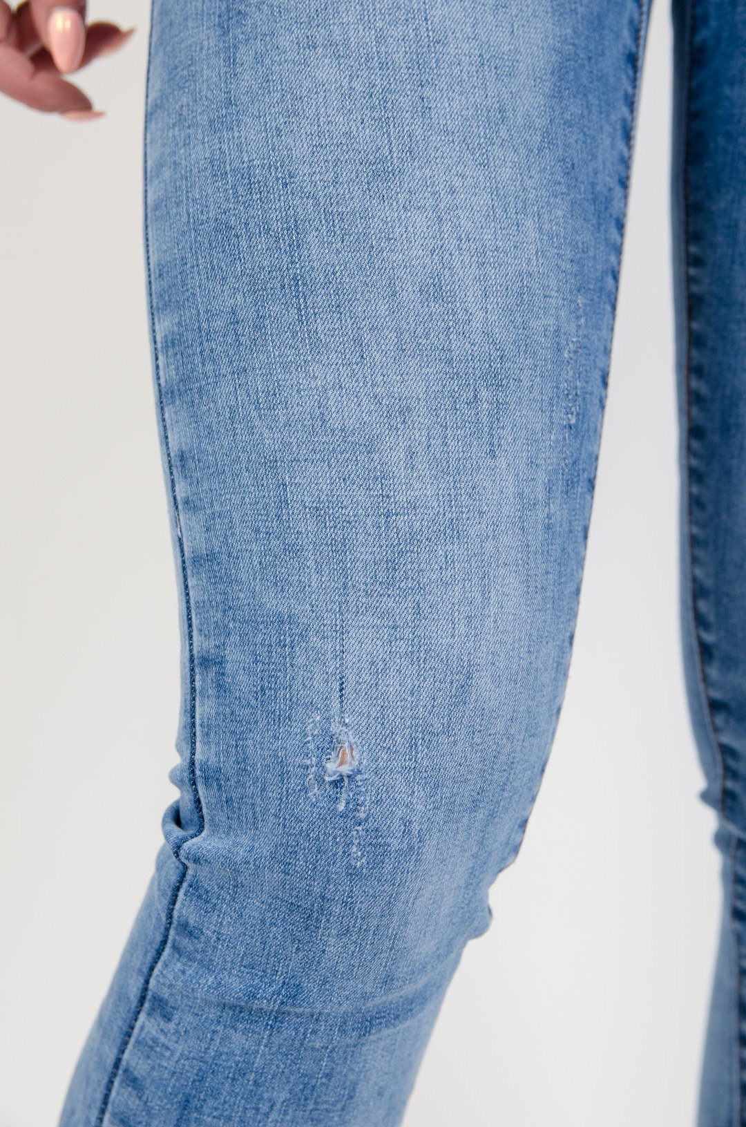 Jasne spodnie jeansowe z delikatnymi przetarciami