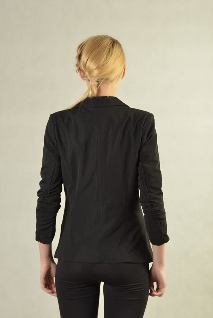 Klasyczna taliowana marynarka, zapinana na jeden guzki. Z przodu dwie ozdobne kieszenie. Rękawek ze stylowym marszczeniem, o długości 7/8.