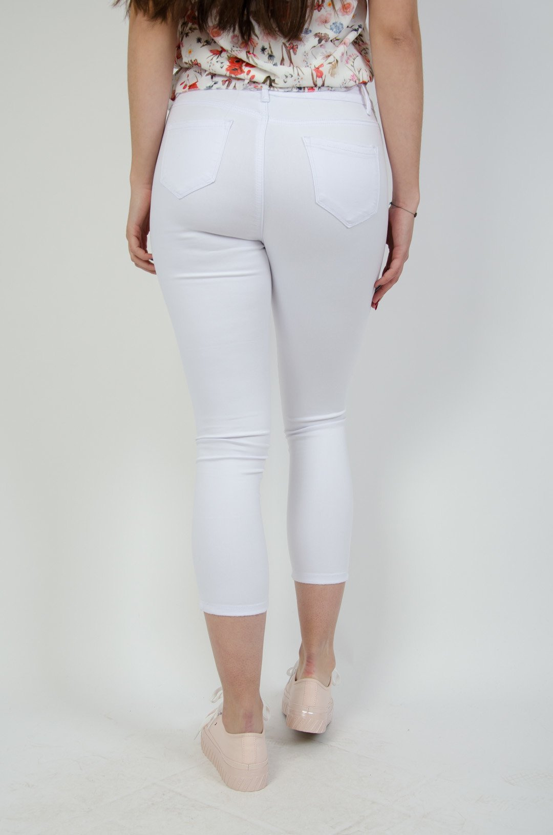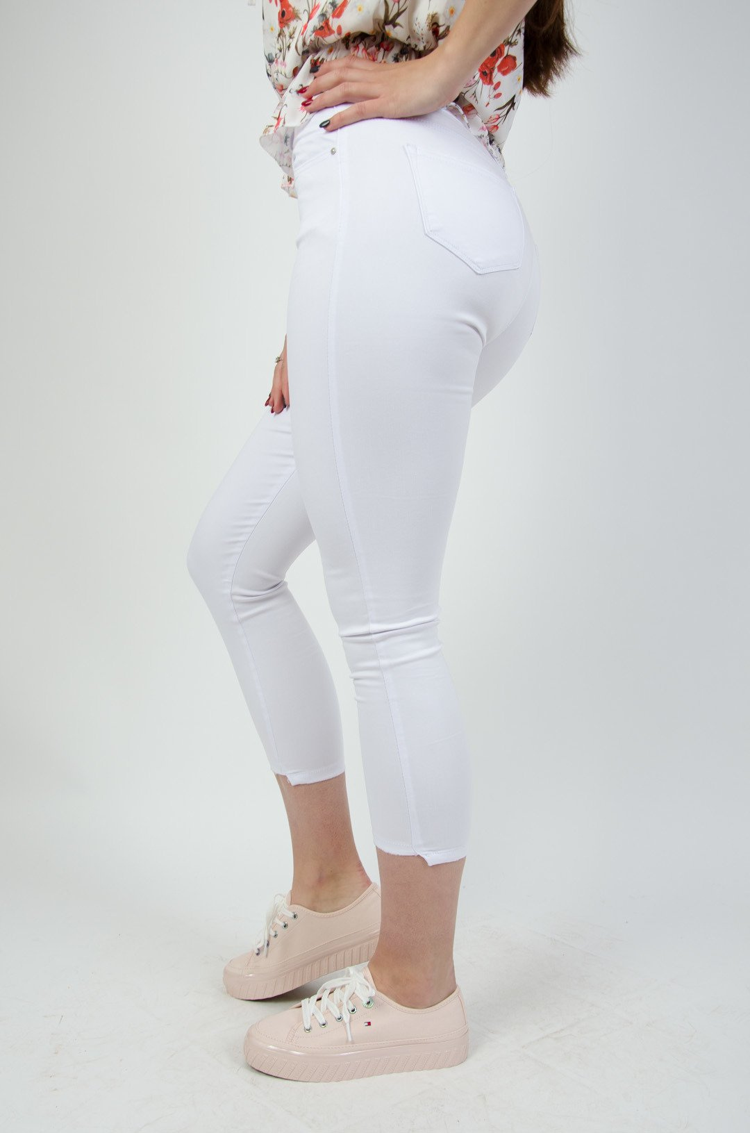 Białe wyszczuplające spodnie z asymetryczną nogawką