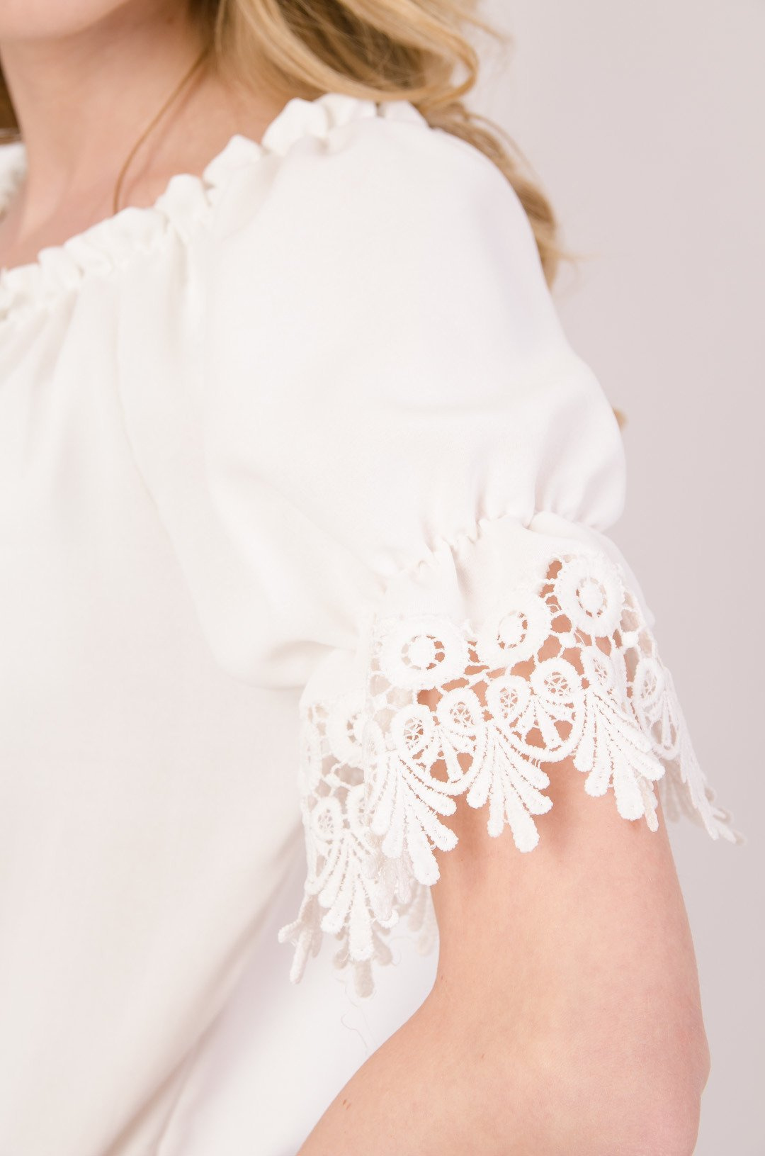 Biała bluzka hiszpanka z koronkowymi wstawkami