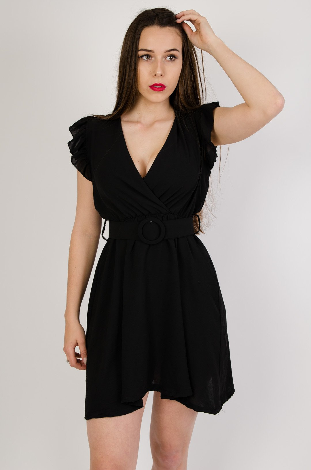 Czarna rozkloszowana sukienka z dekoltem w serek