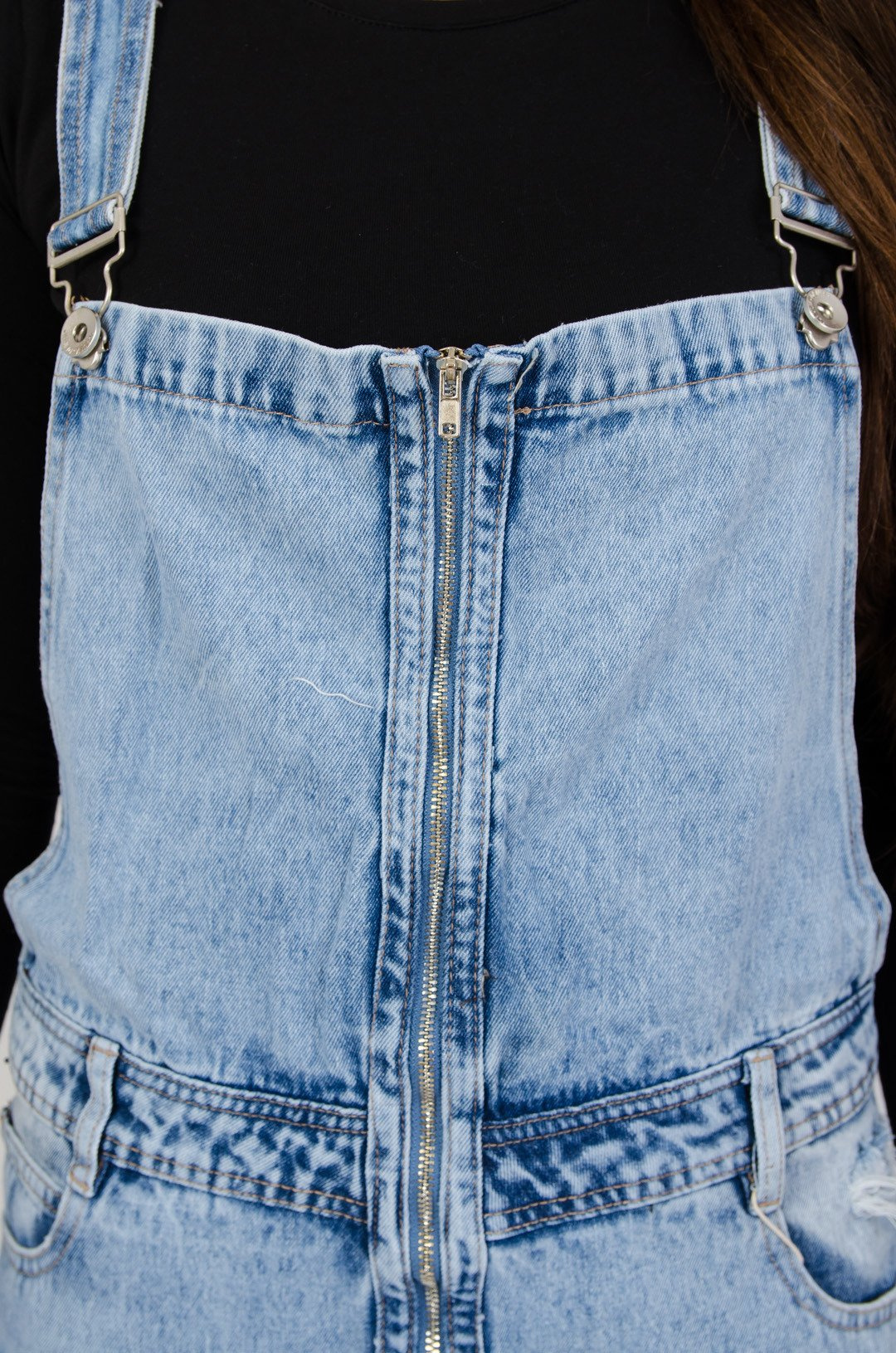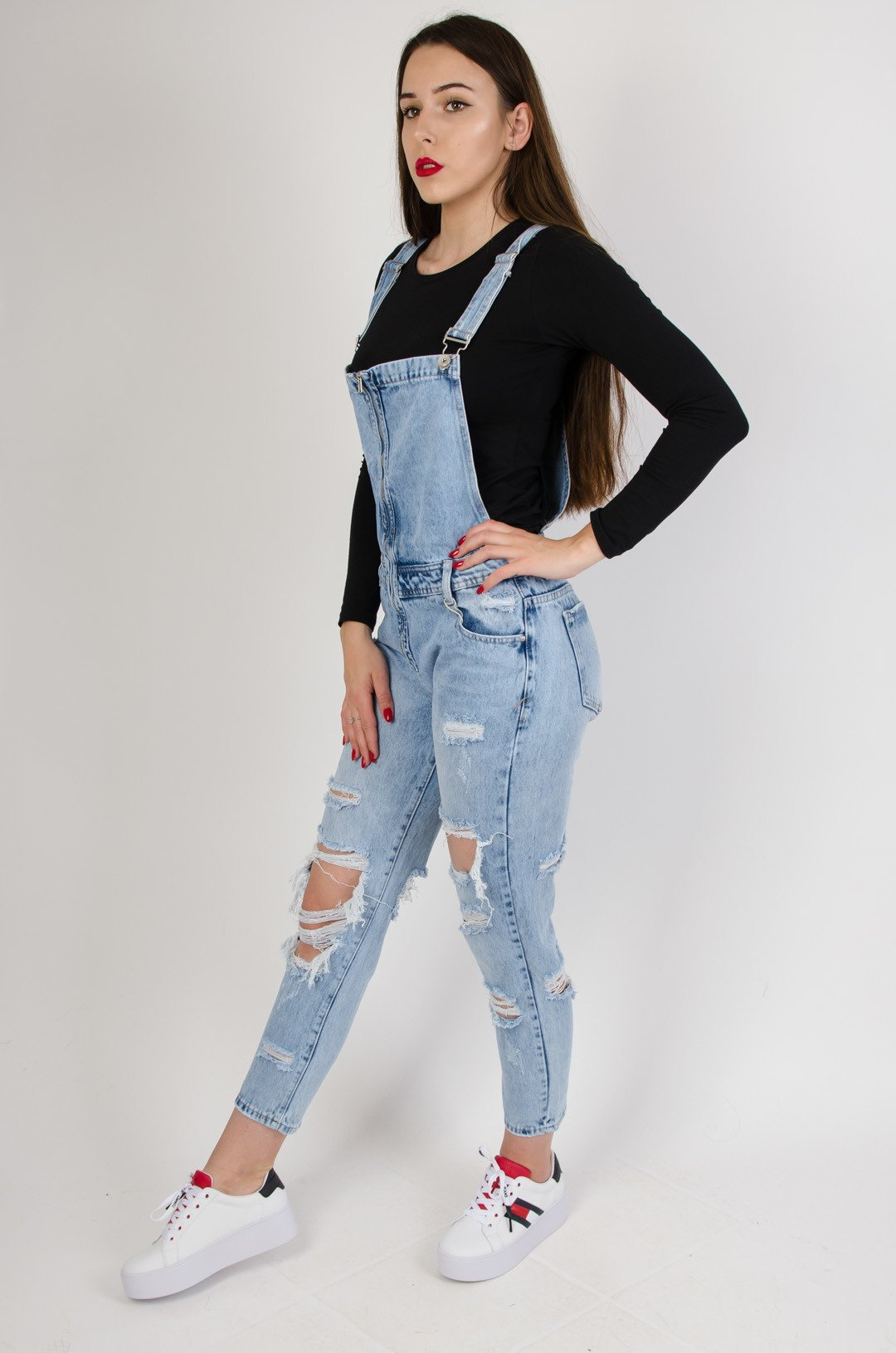 Jasno-Jeansowe ogrodniczki z dziurami zapinane na zamek