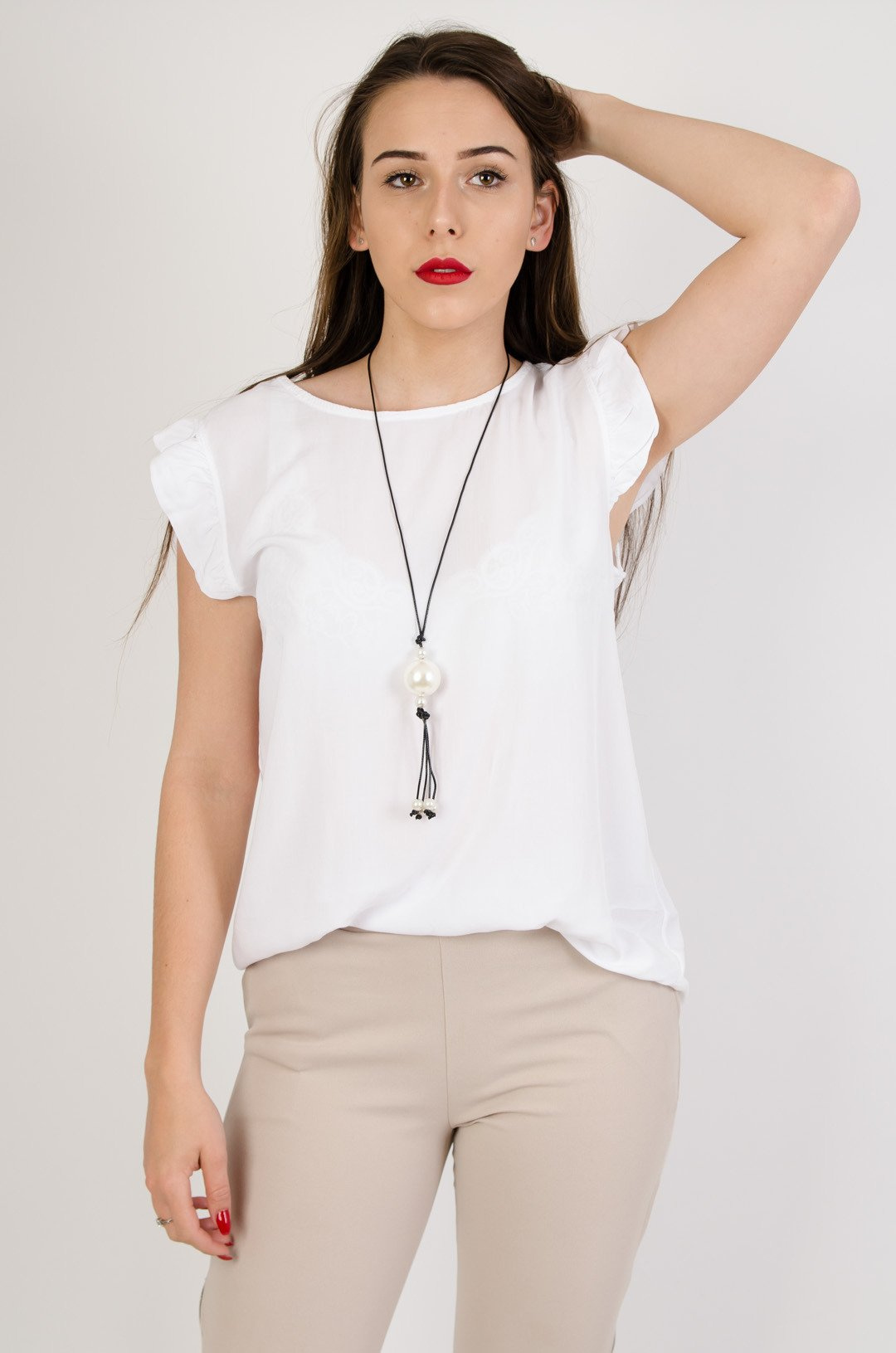 Biała bluzka z guzikami na plecach + wisiorek