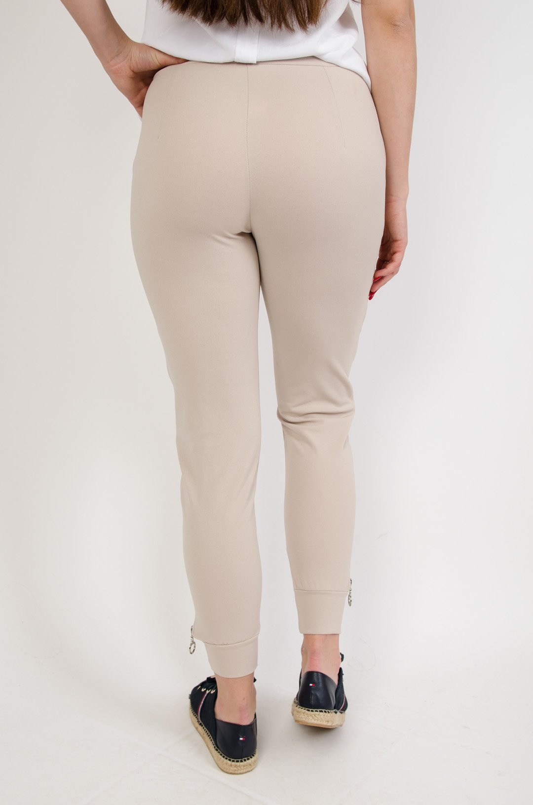 Beżowe spodnie materiałowe z zamkiem na nogawce