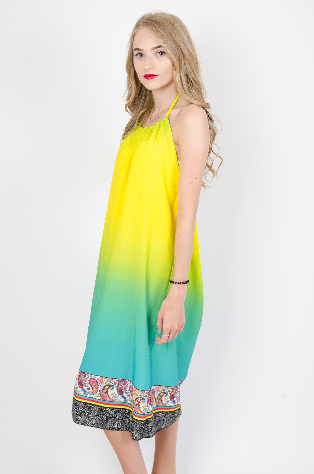 Kolorowa sukienka z wiązaniem na szyi