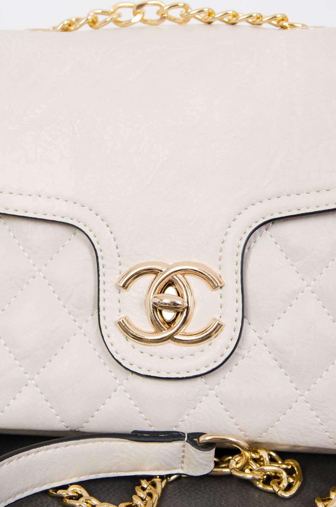 Kremowa pikowana torebka ze złotym łańcuszkiem