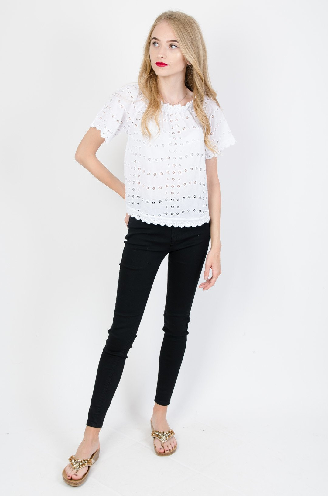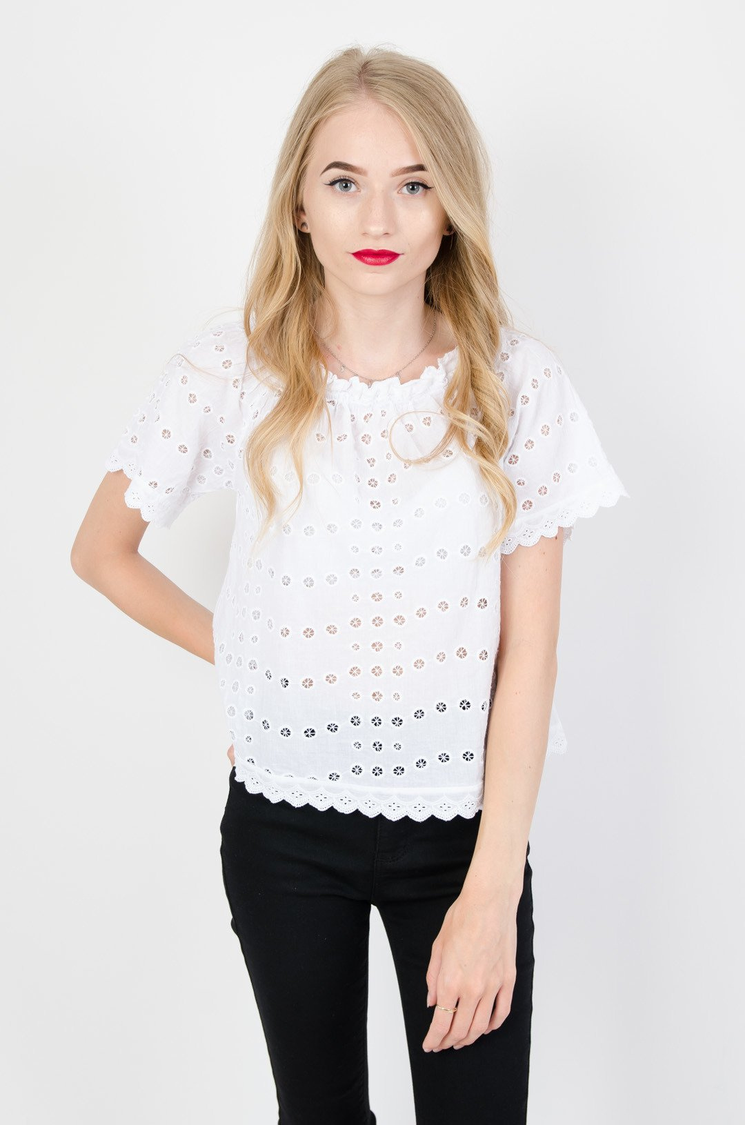 Krótka bluzka w ażurowe kółeczka