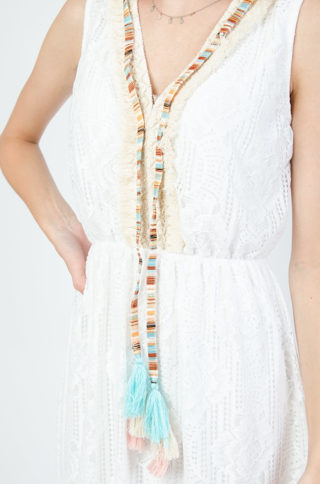 Biała koronkowa sukienka z gumką w pasie
