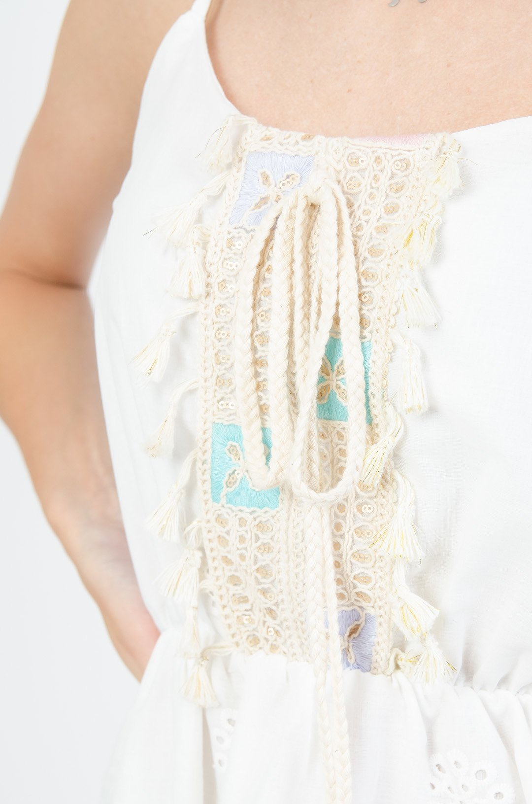 Biała ażurowa sukienka z ozdobnym dekoltem