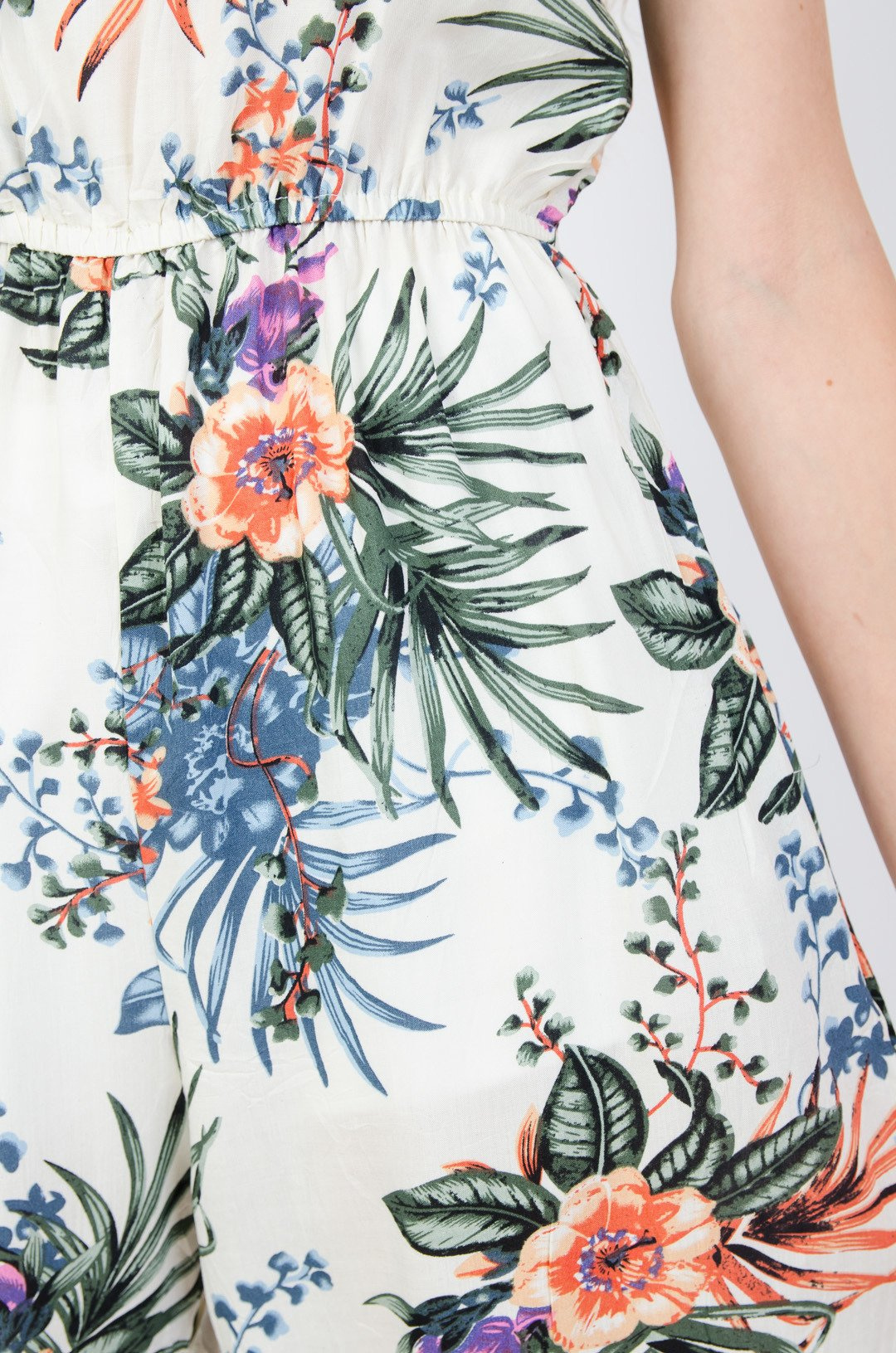 Kremowy długi kombinezon w kwiaty na cienkich ramiączkach- dekolt w szpic