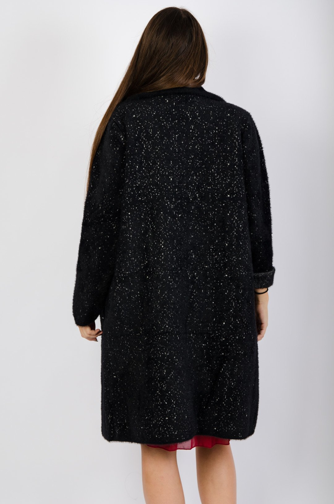 Czarny płaszcz w kropki