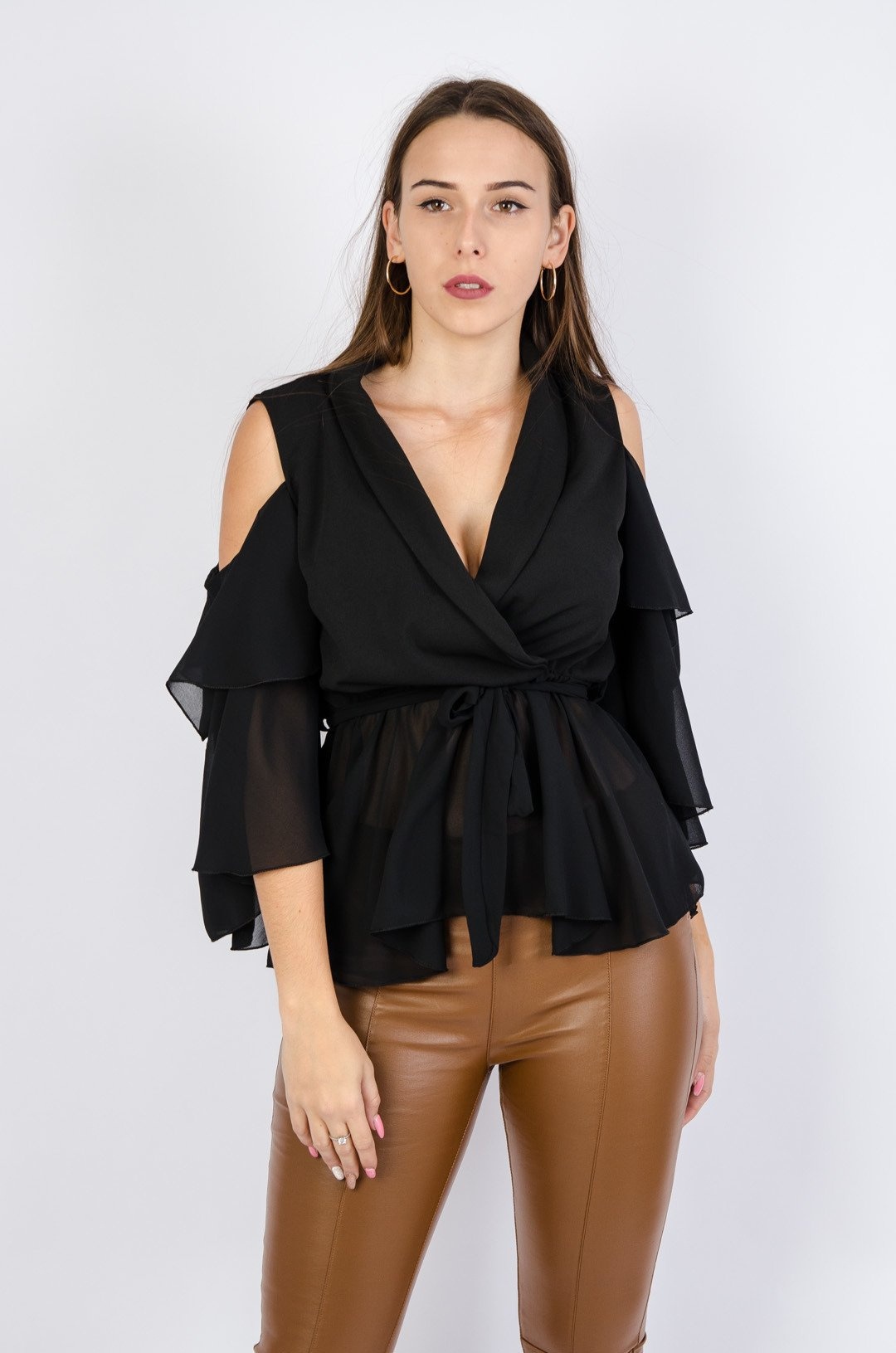 Czarna bluzka hiszpanka z odkrytymi ramionami
