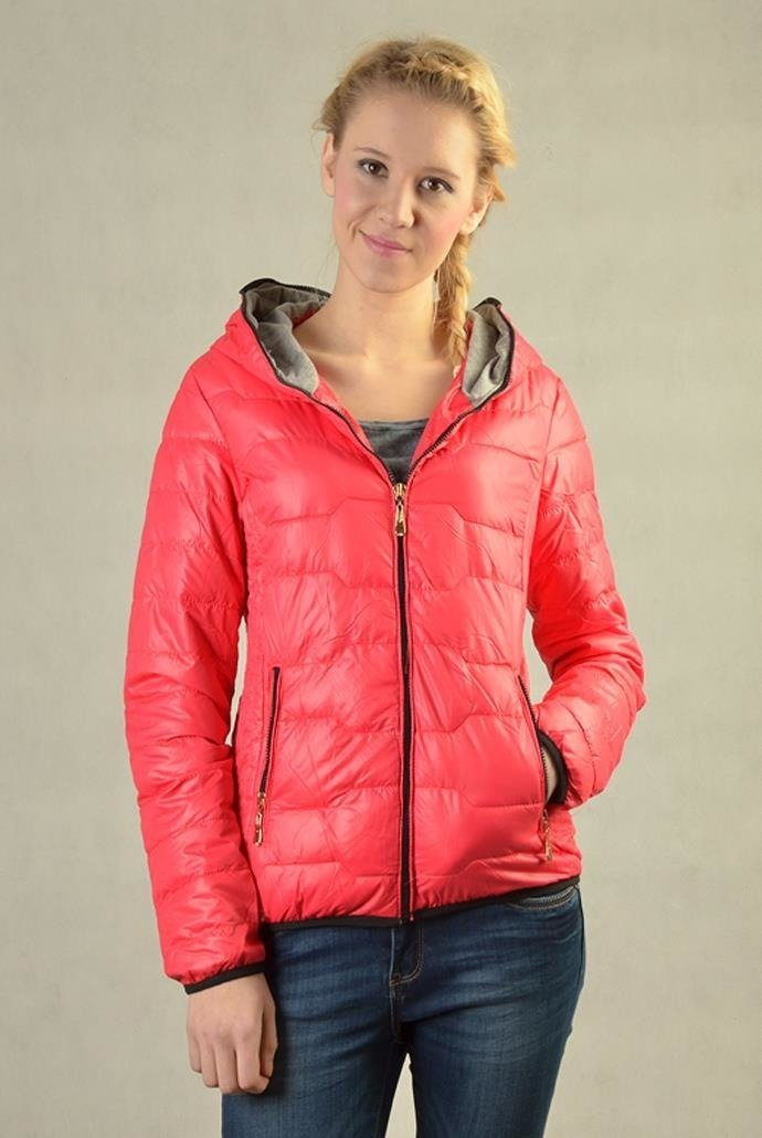 Niezwykle stylowa, krótka, pikowana kurtka z kapturem. Zapinana na suwak. Z przodu dwie kieszenie.