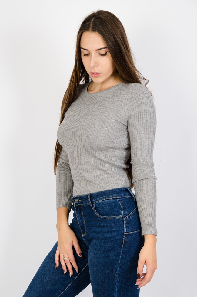 Szary dopasowany sweter z prążkowanej dzianiny
