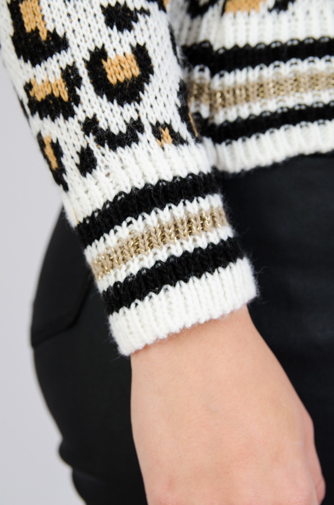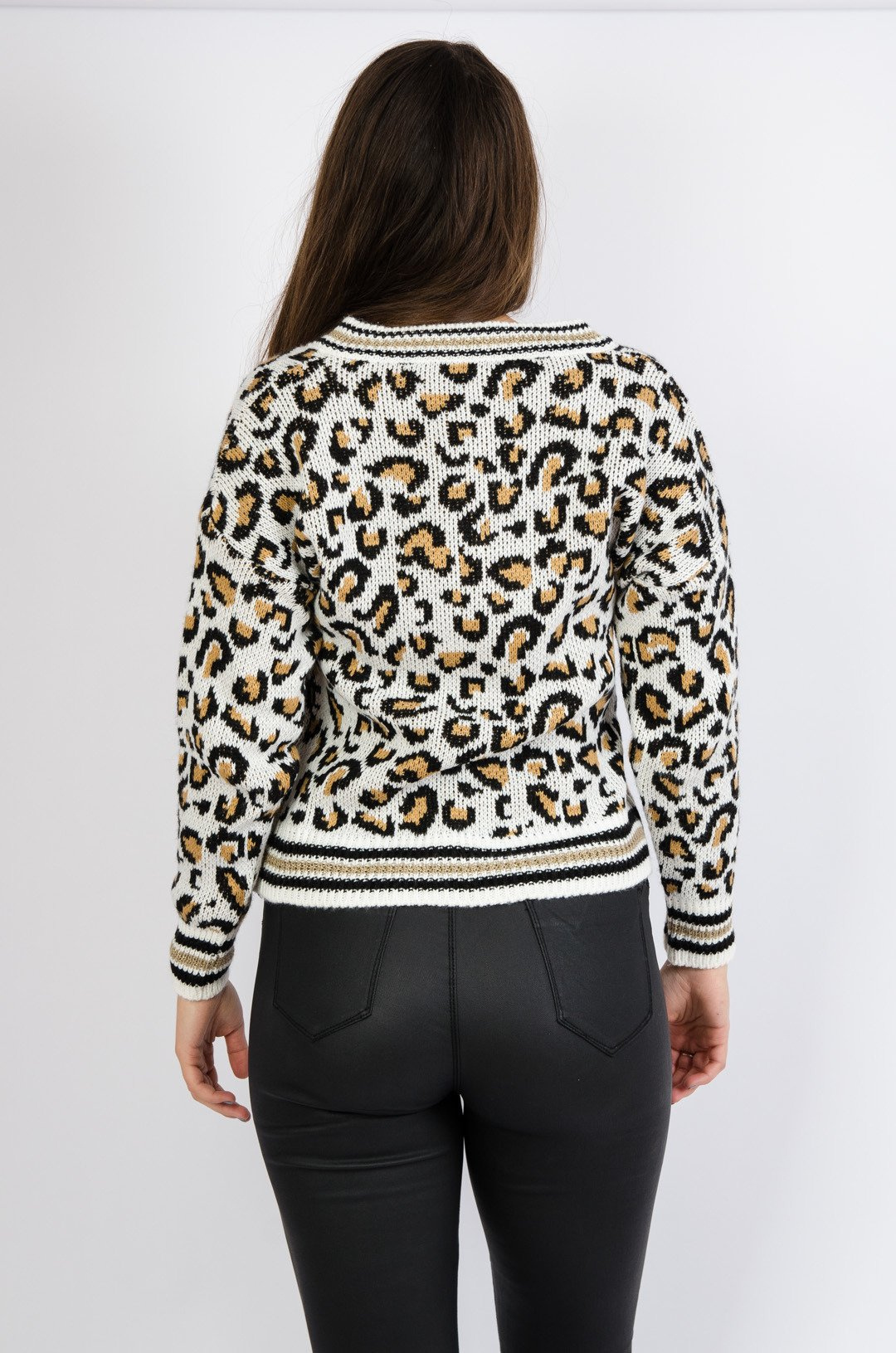BIAŁY SWETER W PANTERKĘ- DEKOLT W SZPIC