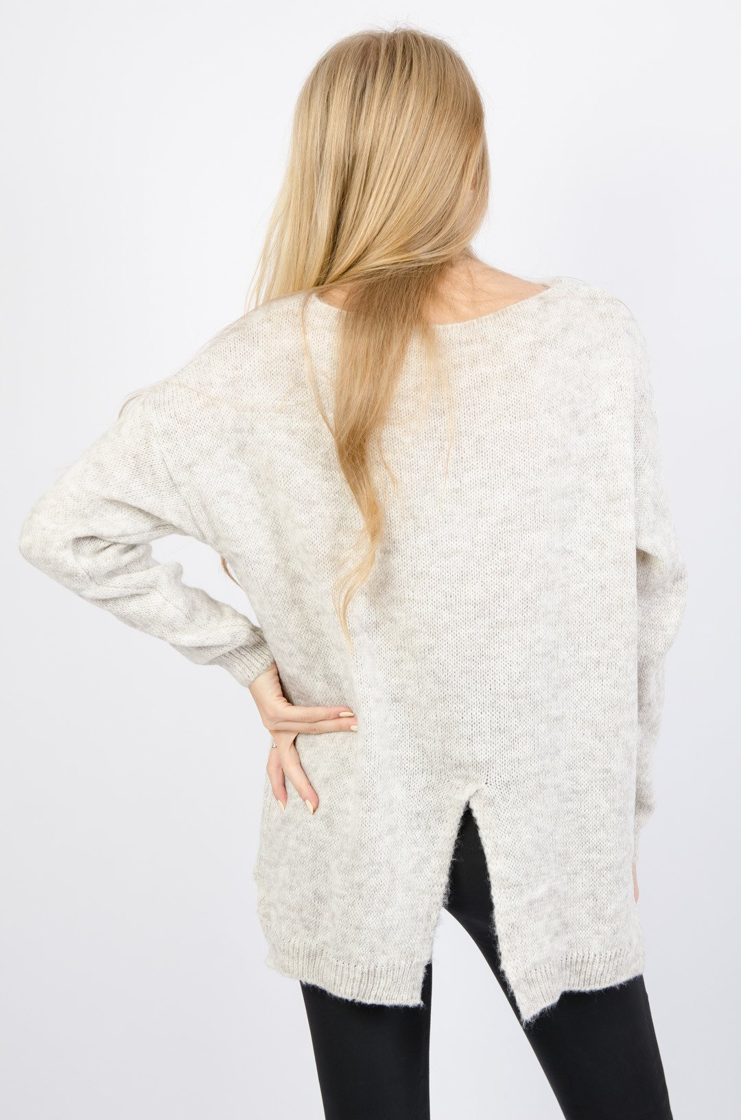BEŻOWY SWETER Z ROZCIĘCIEM Z TYŁU