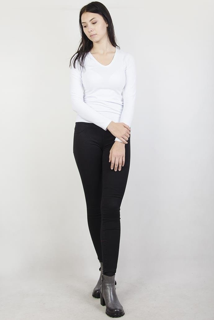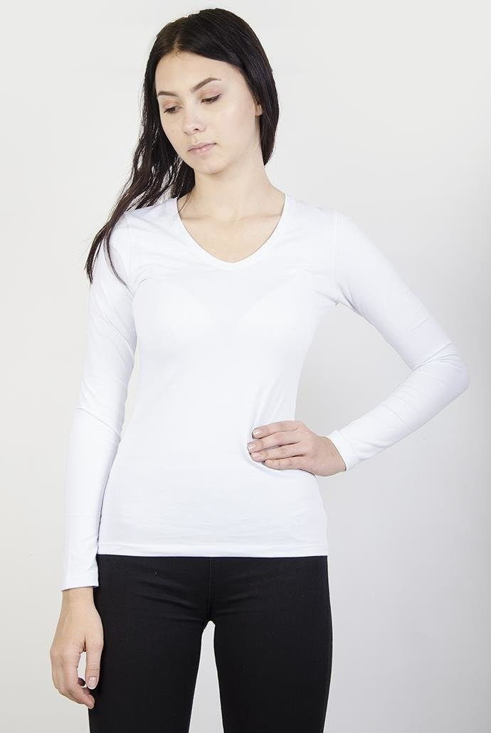 Klasyczna, gładka bluzka z długim rękawem oraz dekoltem w serek. Idealnie sprawdzi się jako baza wielu codziennych stylizacji.