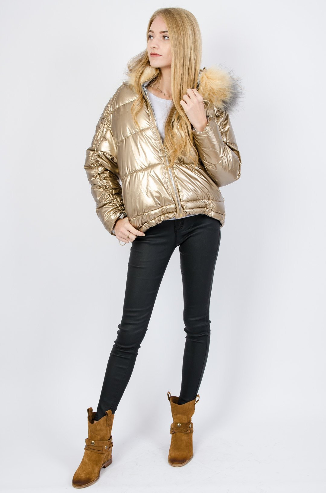 Złota metaliczna bomberka z dwukolorowym futerkiem.