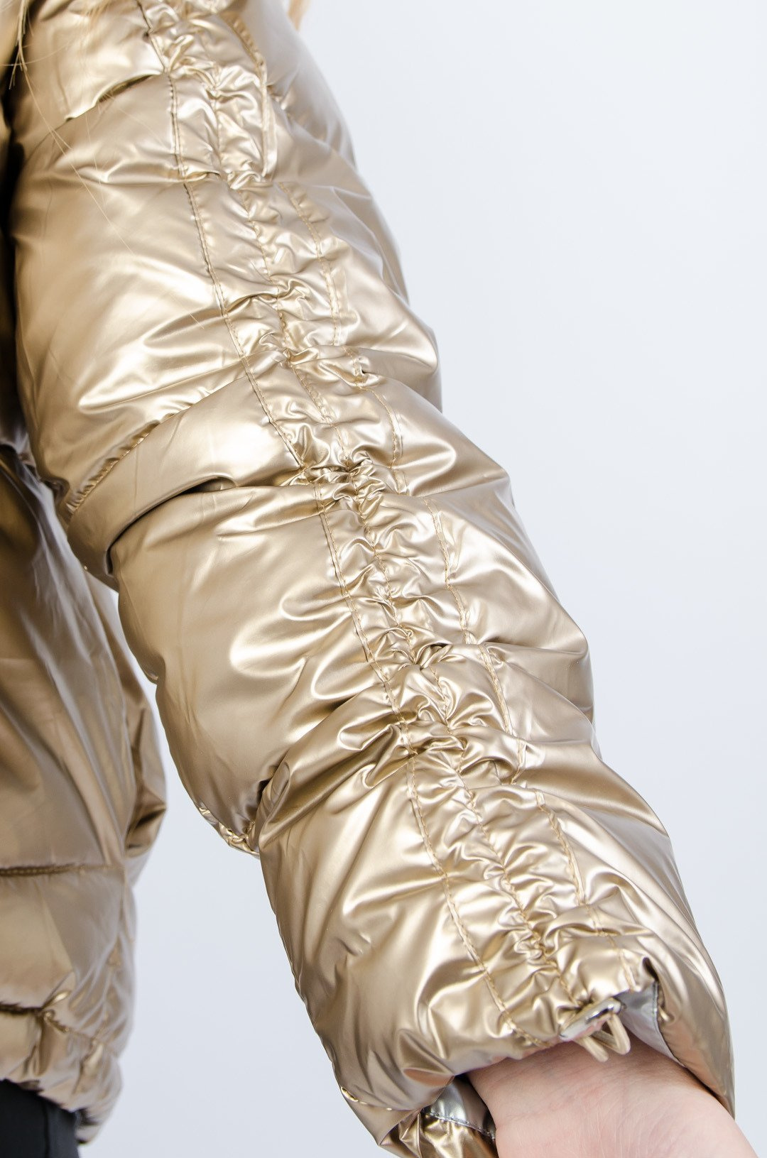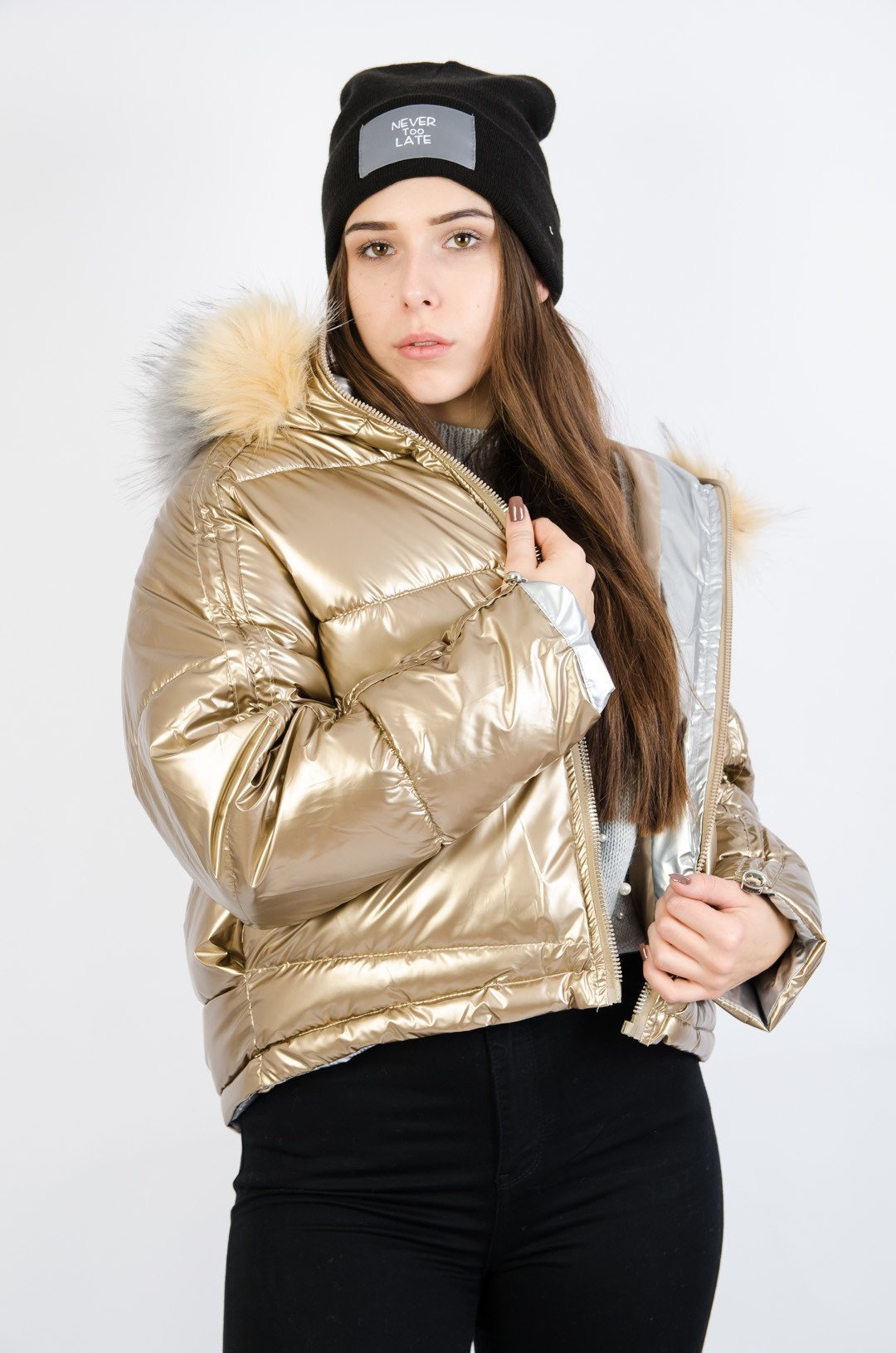 Złota metaliczna bomberka z dwukolorowym futerkiem