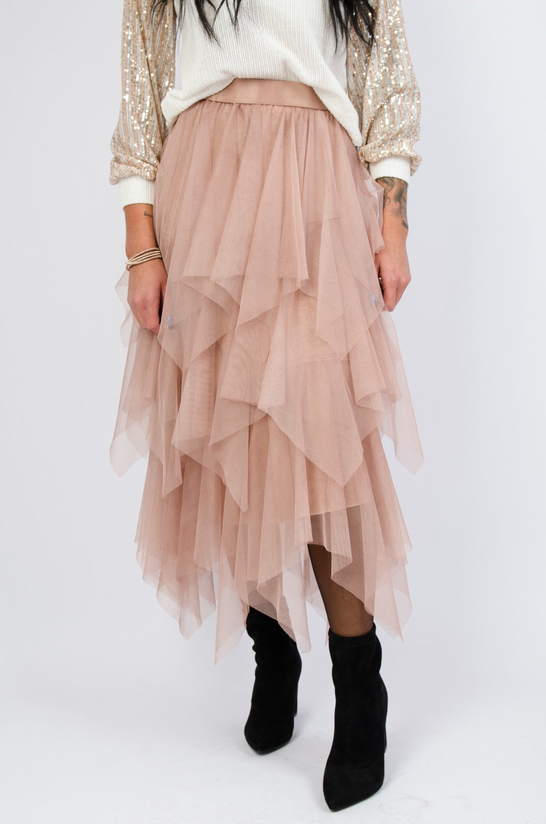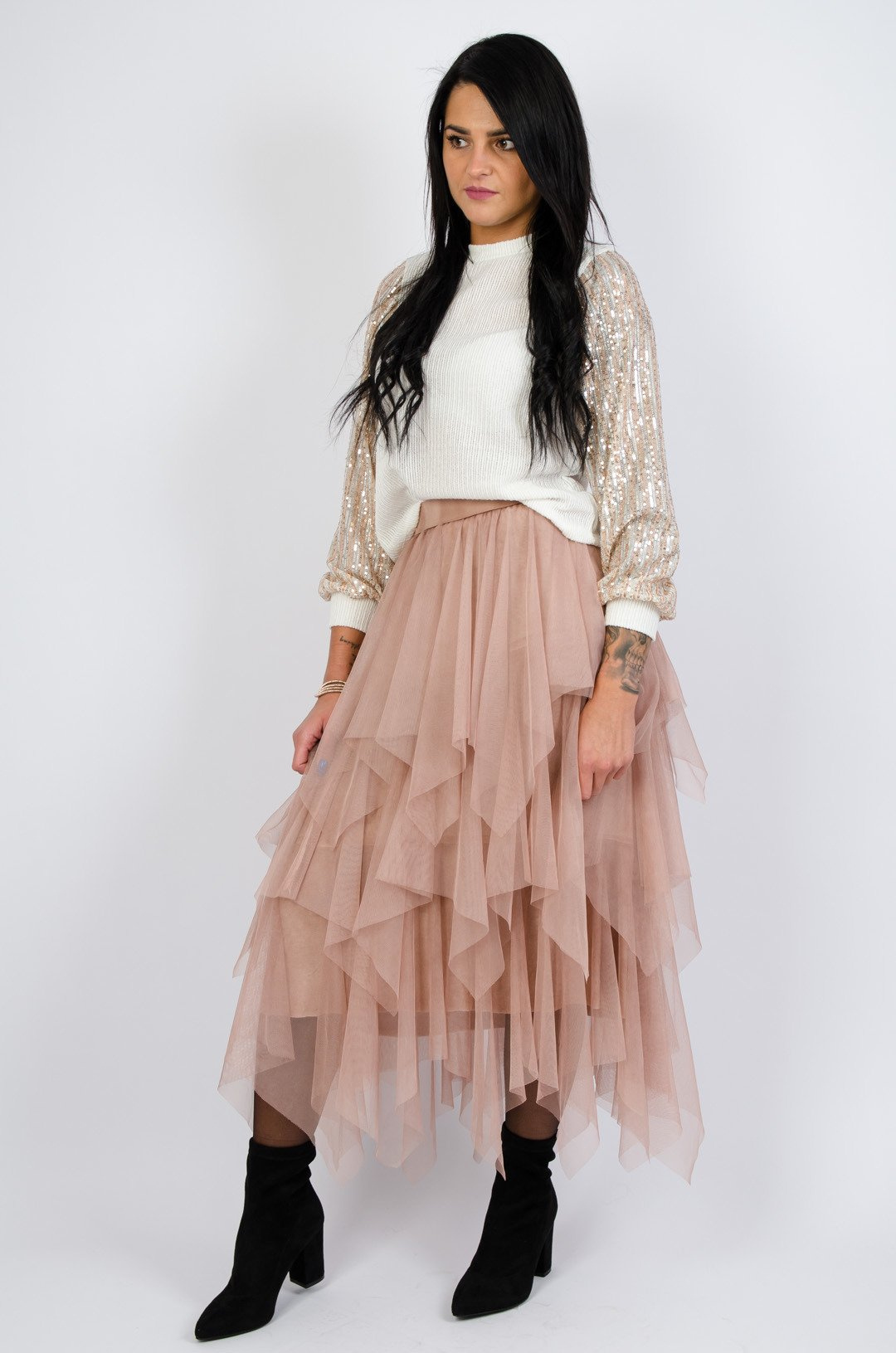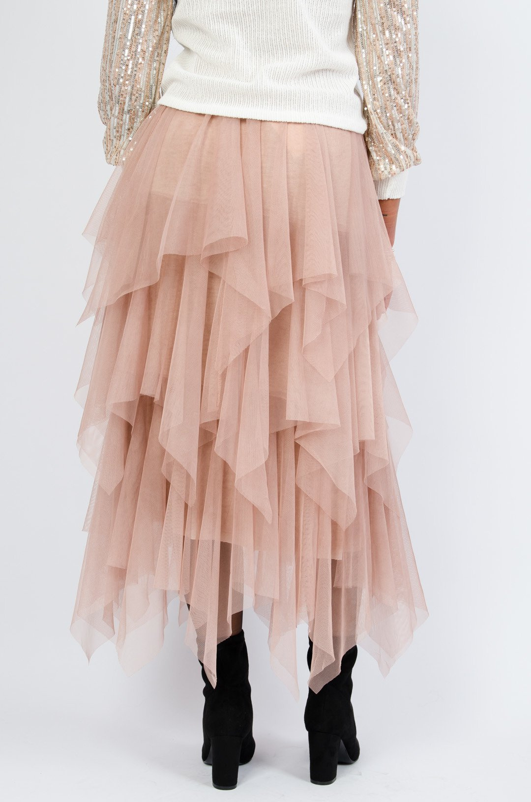RÓŻOWA WARSTWOWA SPÓDNICA Z TIULU Z GUMĄ W PASIE