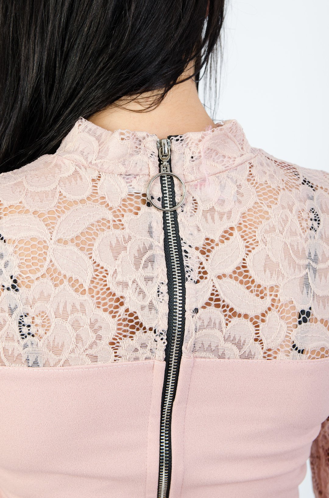RÓŻOWA KORONKOWA BLUZKA Z BASKINKĄ - ZAMEK Z TYŁU