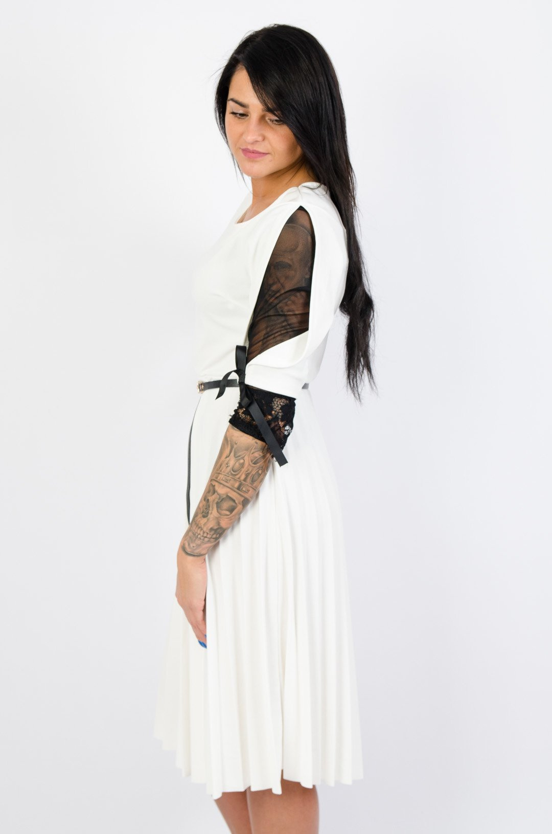 BIAŁA SUKIENKA MIDI Z PLISOWANYM DOŁEM + PASEK