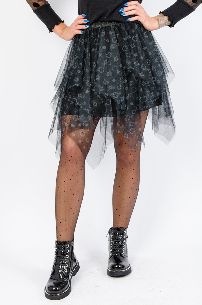 WZORZYSTA SPÓDNICA TIULOWA MINI Z ELASTYCZNYM PASEM