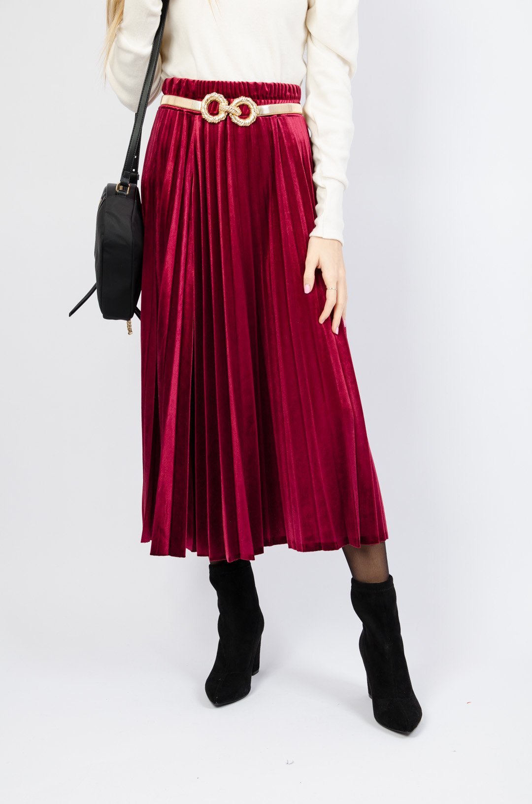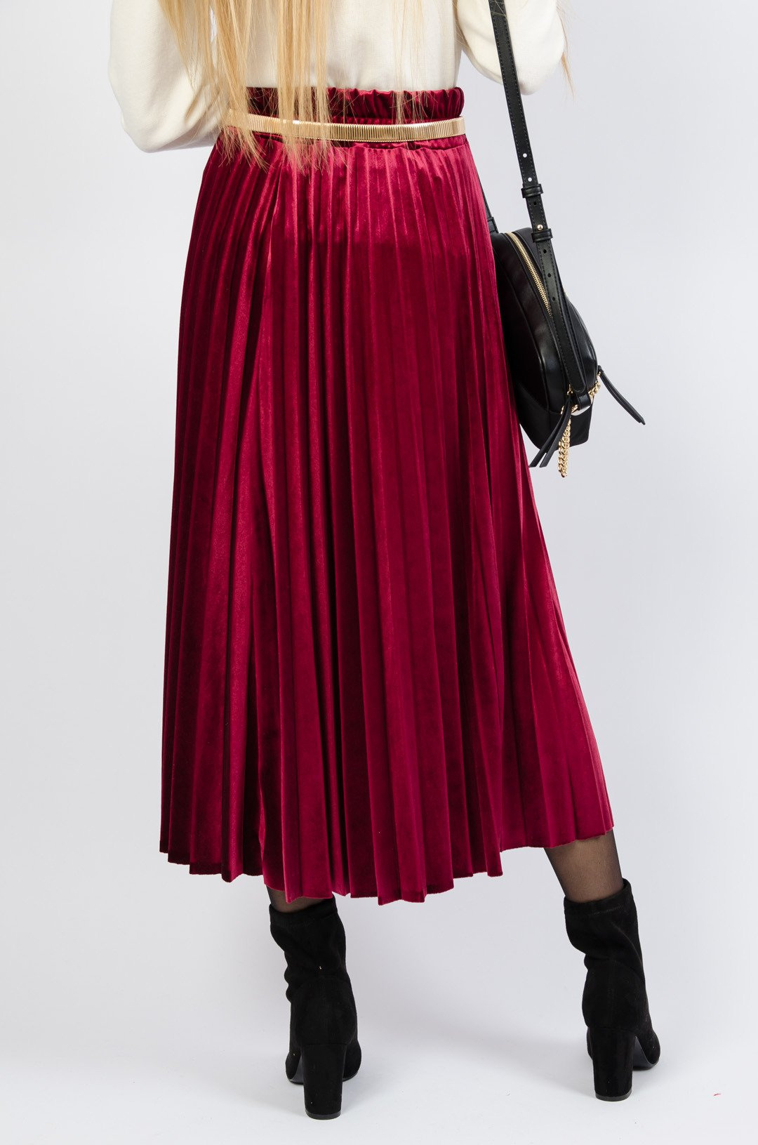 BORDOWA WELUROWA SPÓDNICA Z PLISOWANIEM