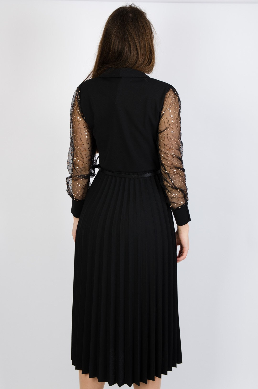 CZARNA PLISOWANA SUKIENKA Z OZDOBNYMI RĘKAWAMI