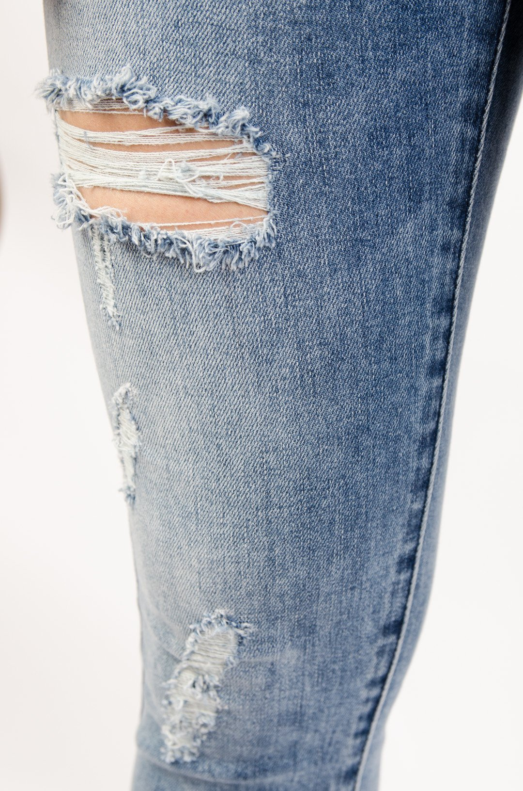 JASNE SPODNIE JEANSOWE Z DZIURAMI - WYSOKI STAN