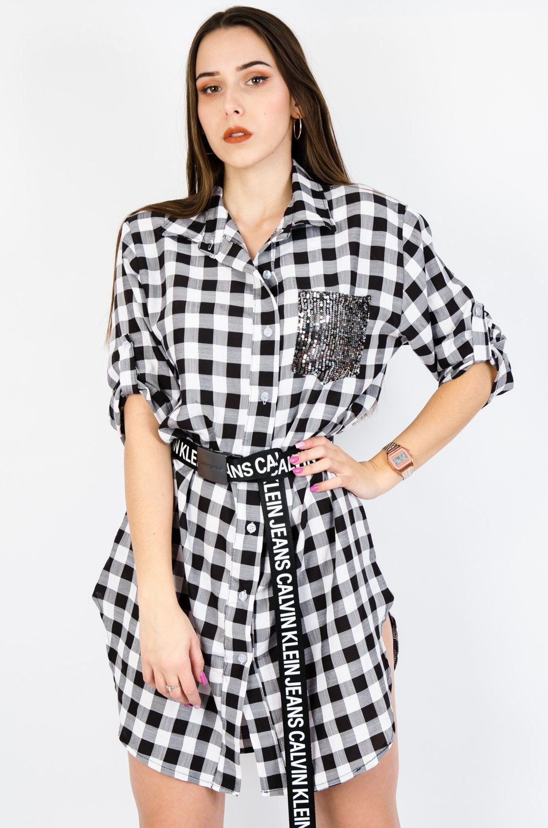 SUKIENKA KOSZULOWA W KRATĘ