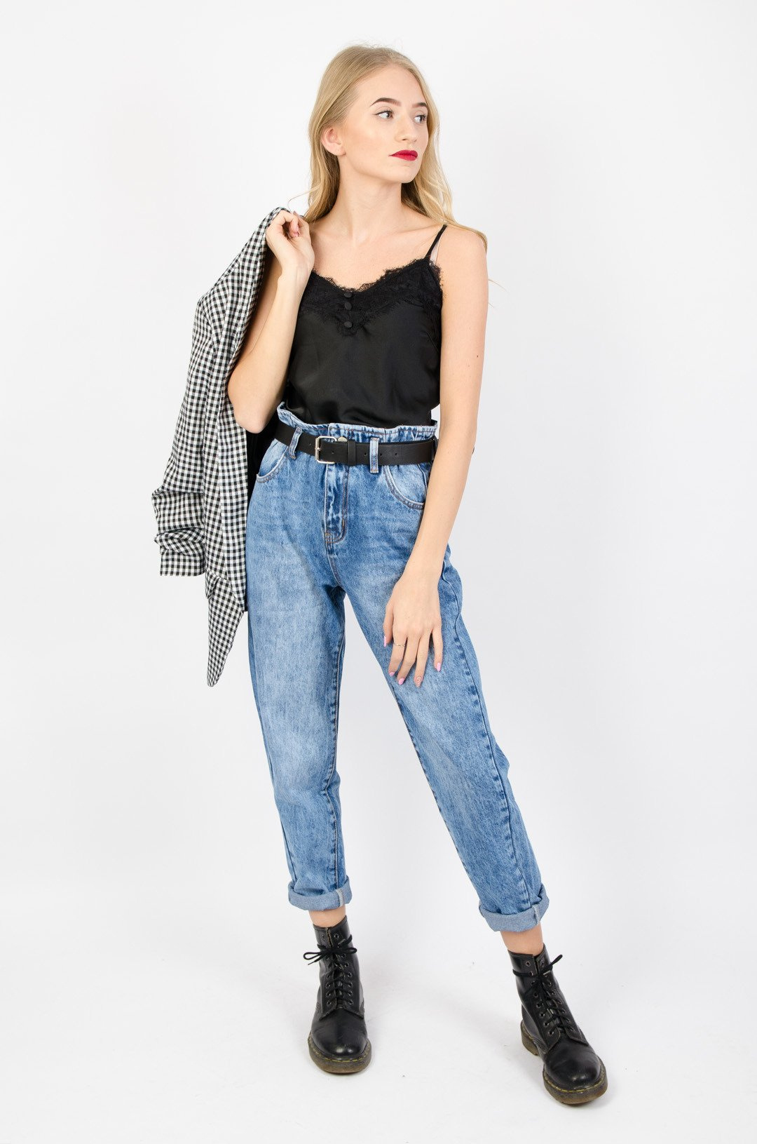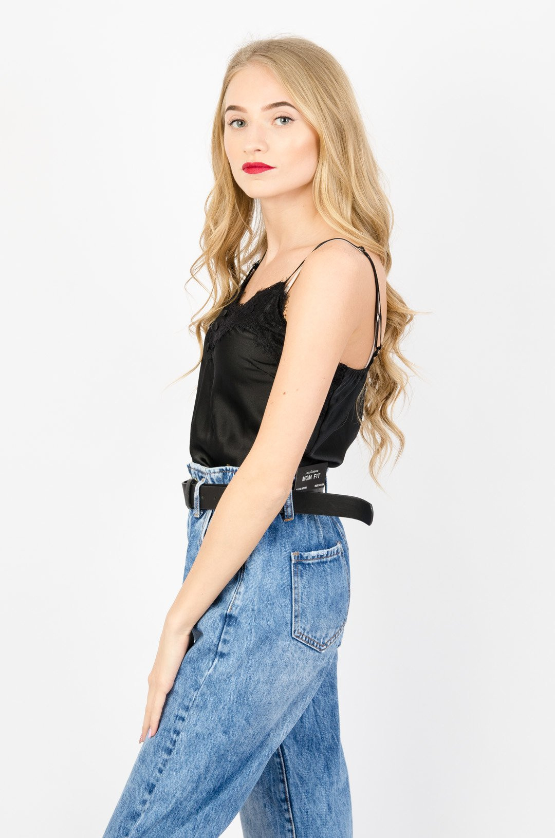 CZARNA SATYNOWA BLUZKA NA CIENKICH RAMIĄCZKACH