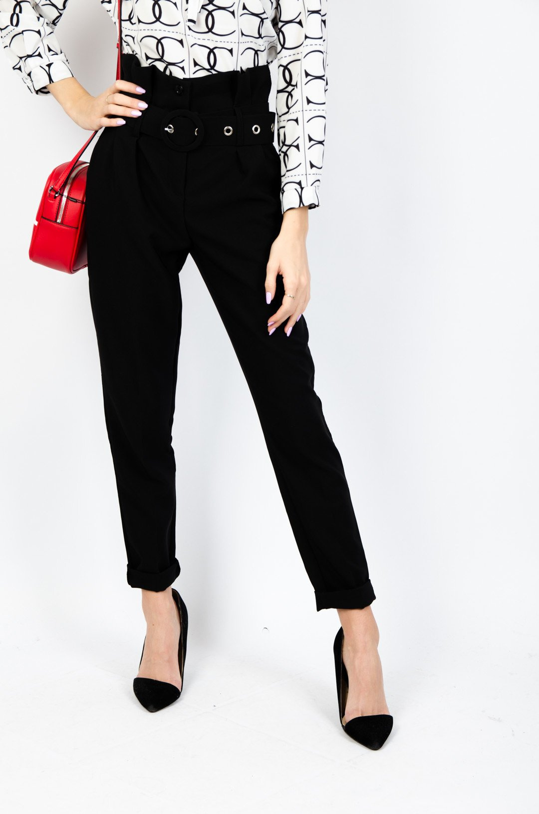 CZARNE ELEGANCKIE SPODNIE Z WYSOKIM STANEM + PASEK