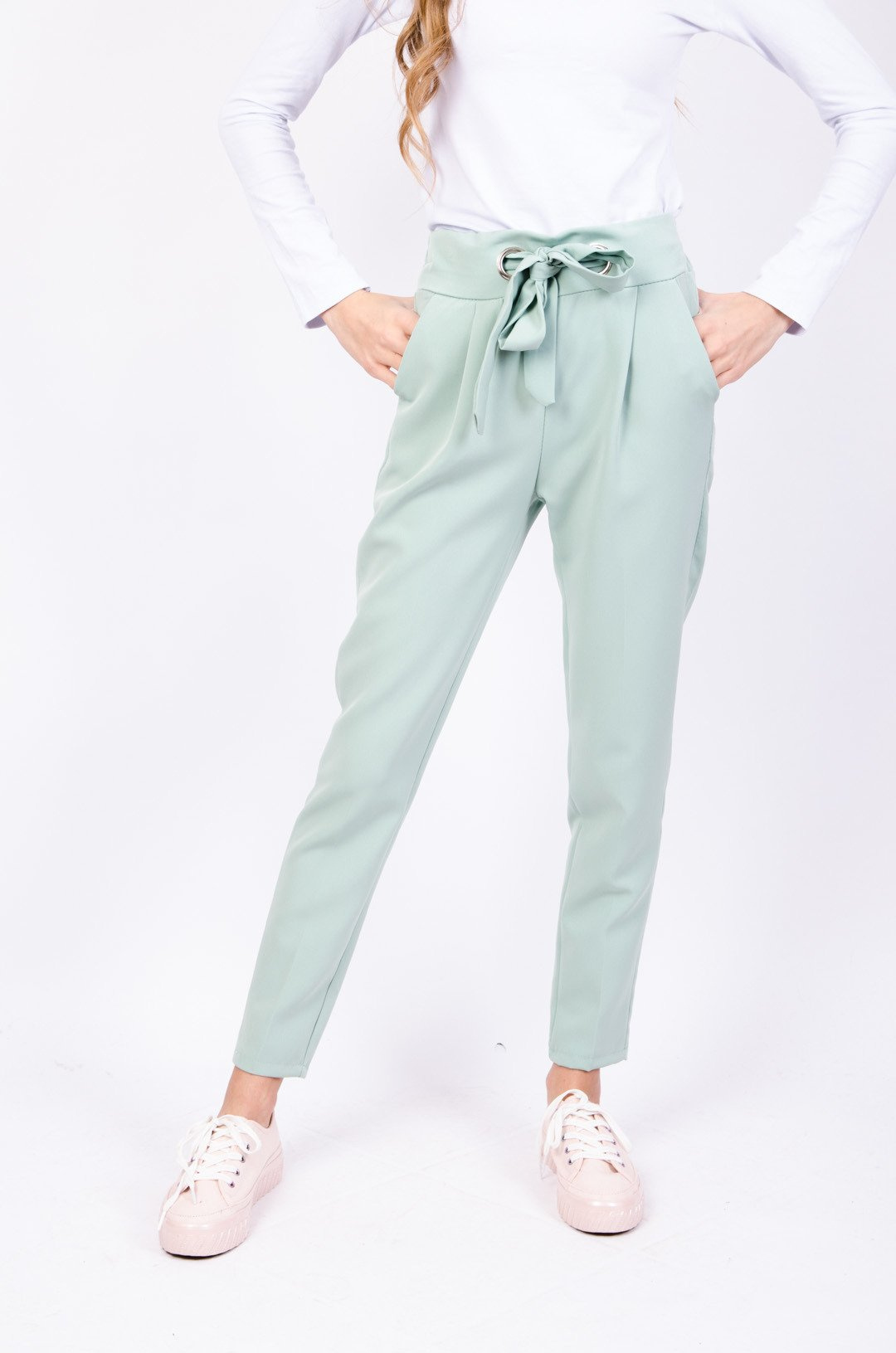 ZIELONE ELEGANCKIE SPODNIE Z WIĄZANIEM W PASIE