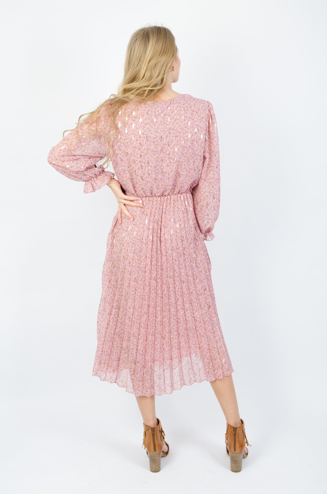 RÓŻOWA SUKIENKA W KWIATY Z PLISOWANYM DOŁEM