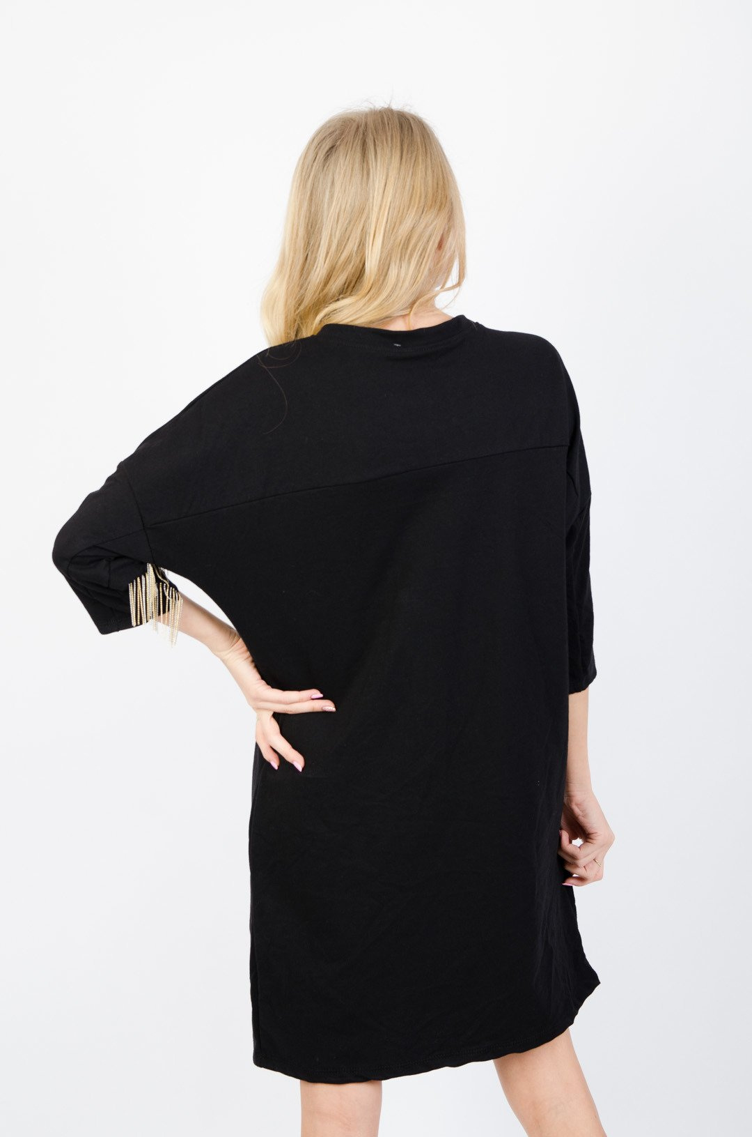 CZARNA DZIANINOWA SUKIENKA Z FRĘDZLAMI
